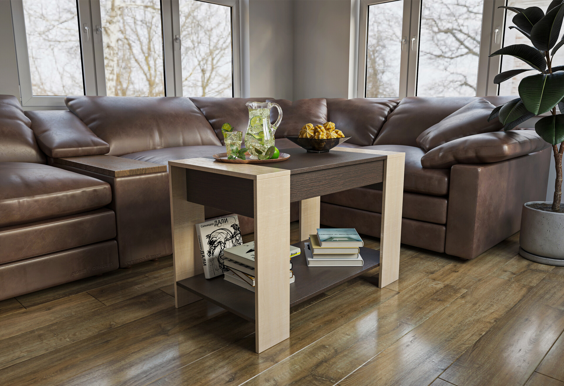 Стол журнальный Garant Рио 90x60 см с полкой Дуб молочный / Венге