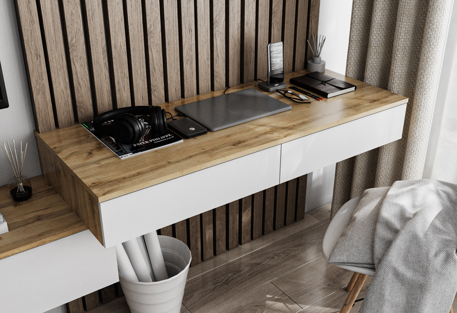 Изображение 2 - Стол письменный Moreli Т222 подвесной с 2 ящиками 120x50 см дуб аппалачи / белый