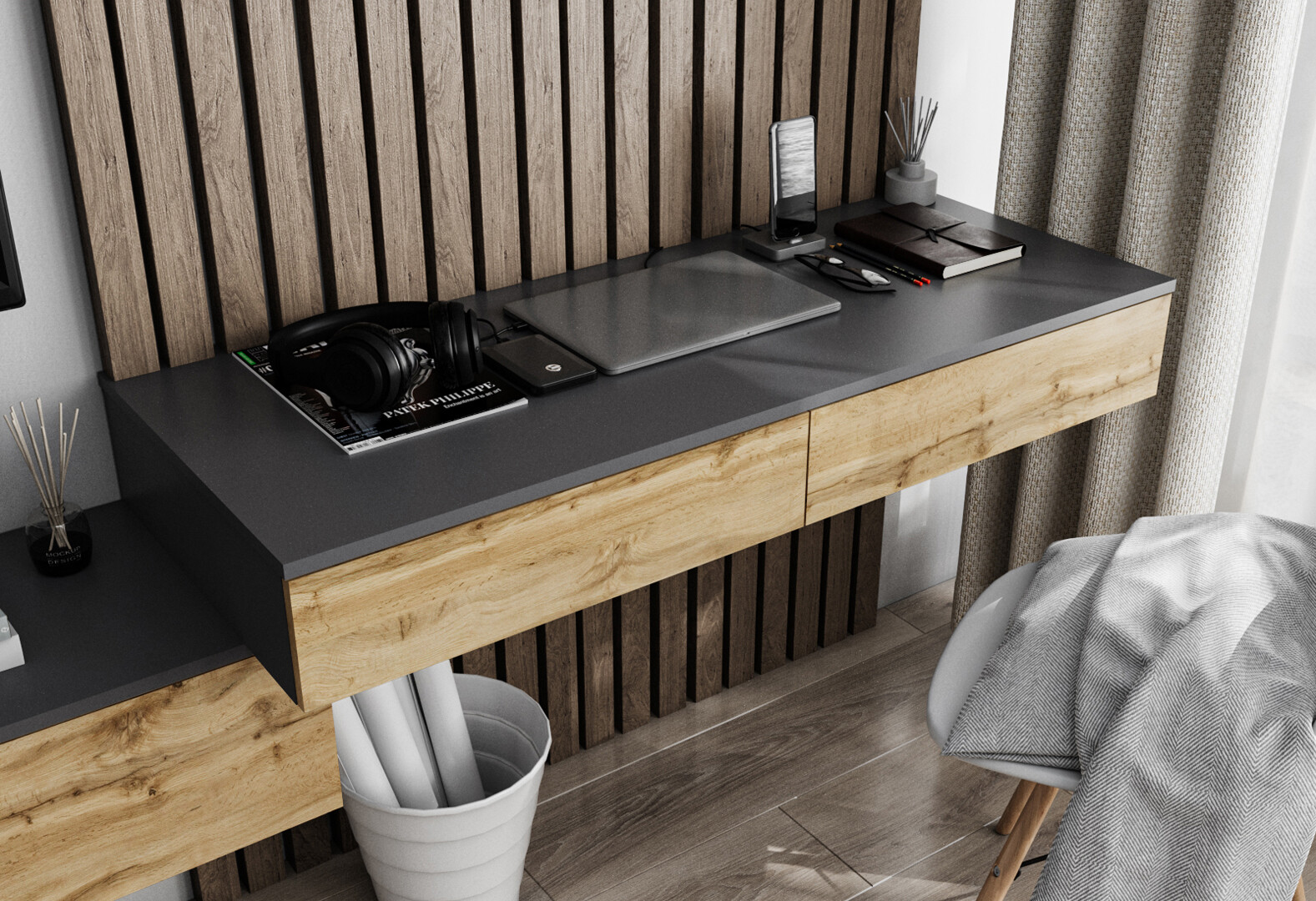 Стол письменный Moreli Т222 подвесной с 2 ящиками 120x50 см антрацит / дуб аппалачи