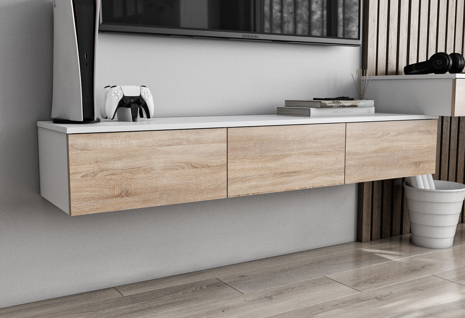 Тумба под ТВ Moreli Т221 подвесная з 3 ящиками 150 см белый / дуб сонома