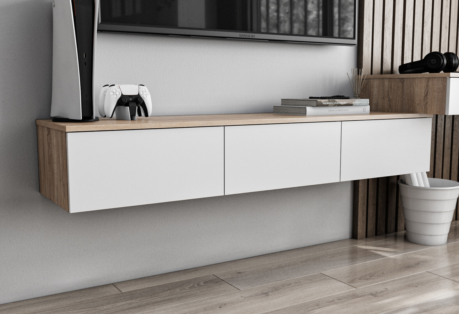 Тумба под ТВ Moreli Т221 подвесная з 3 ящиками 150 см дуб сонома / белый