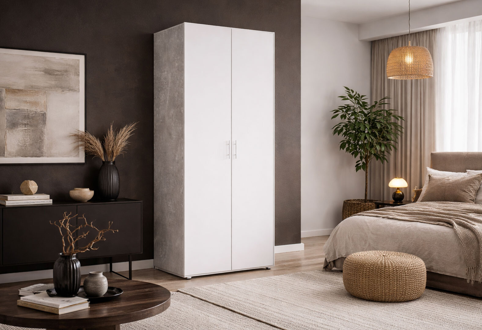 Шкаф Киевский стандарт КС 2-дверный 80 см бетон / нимфеа альба