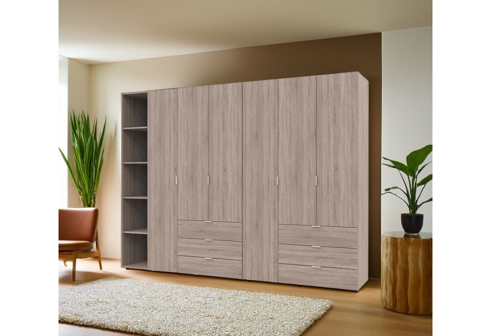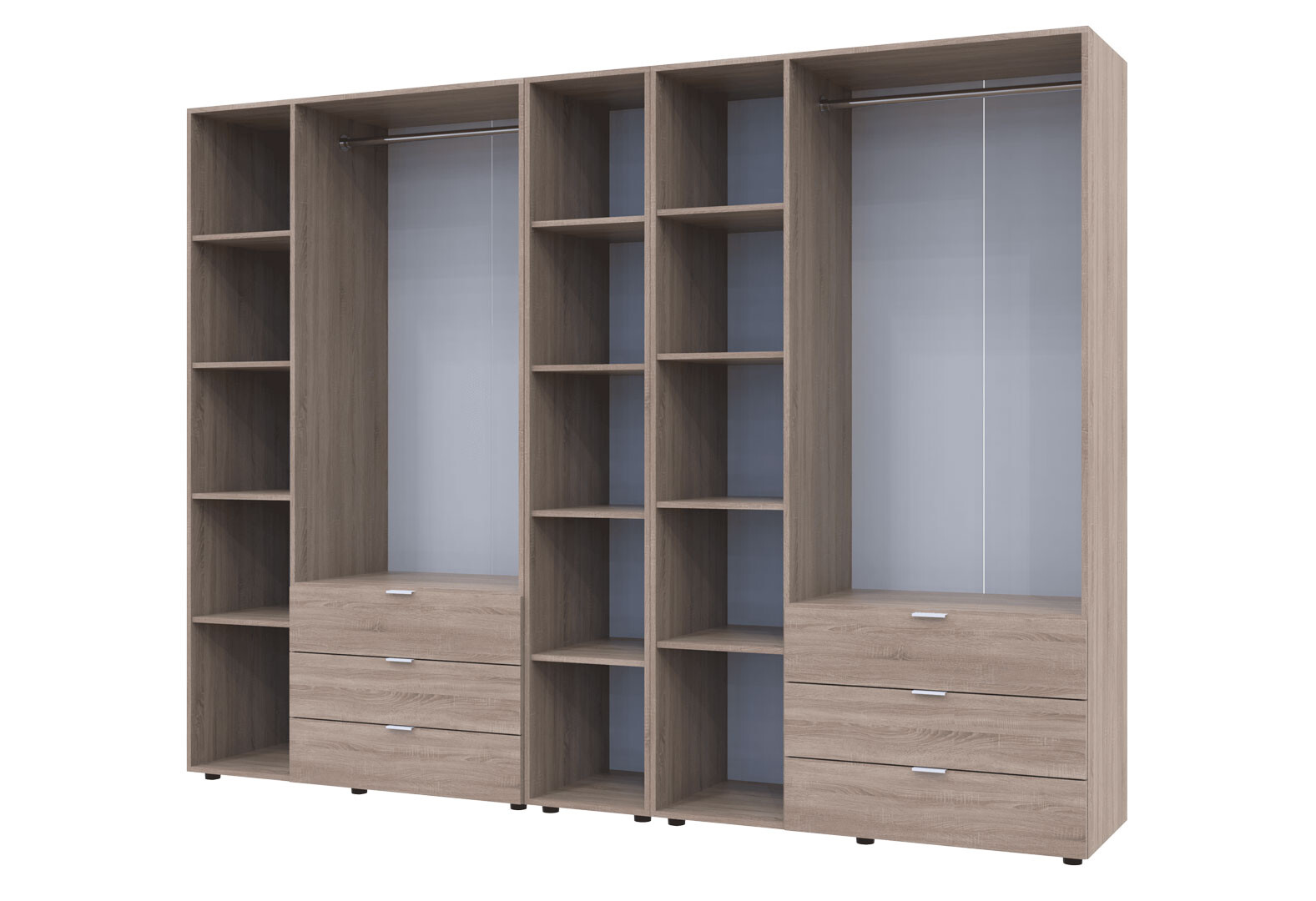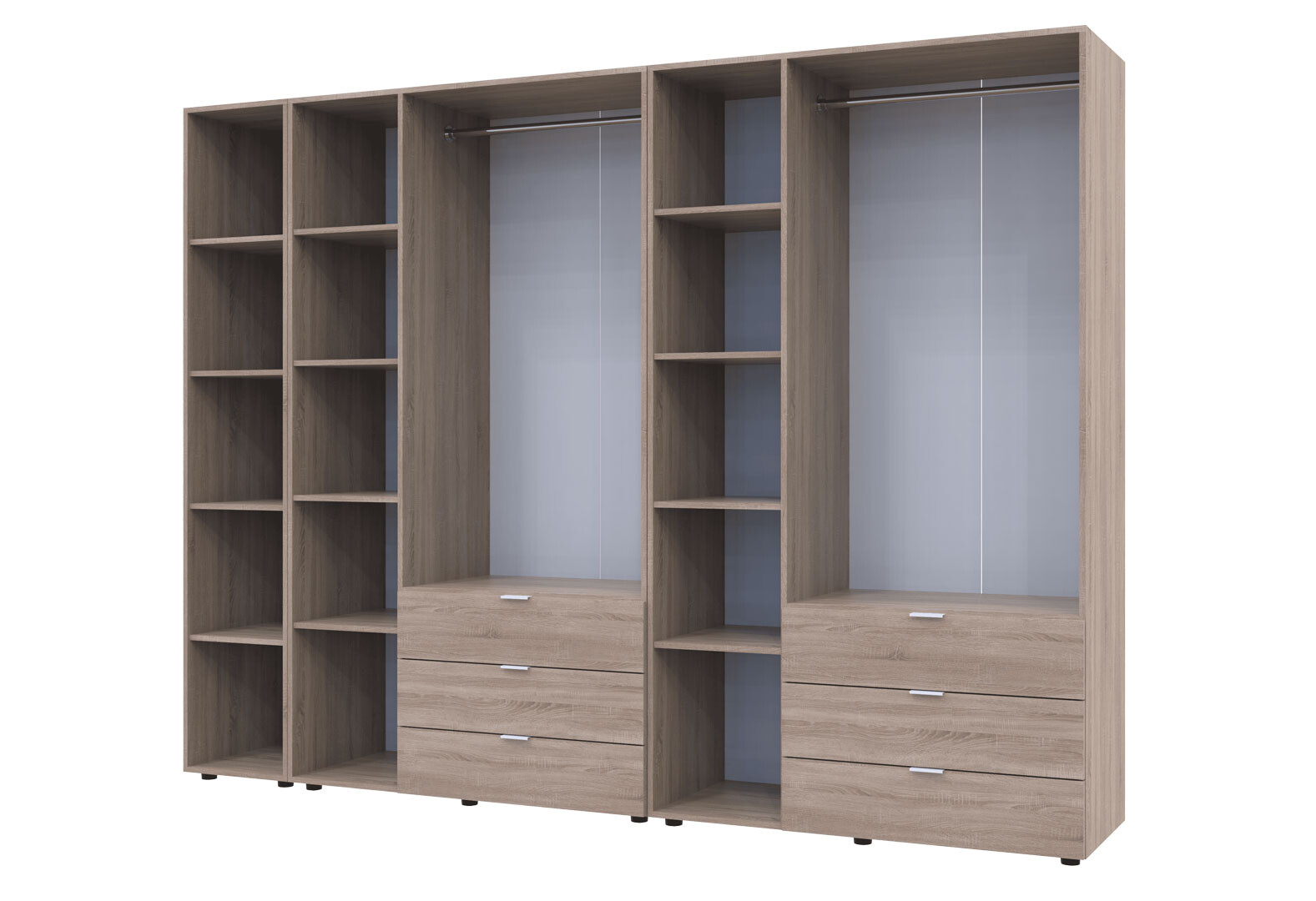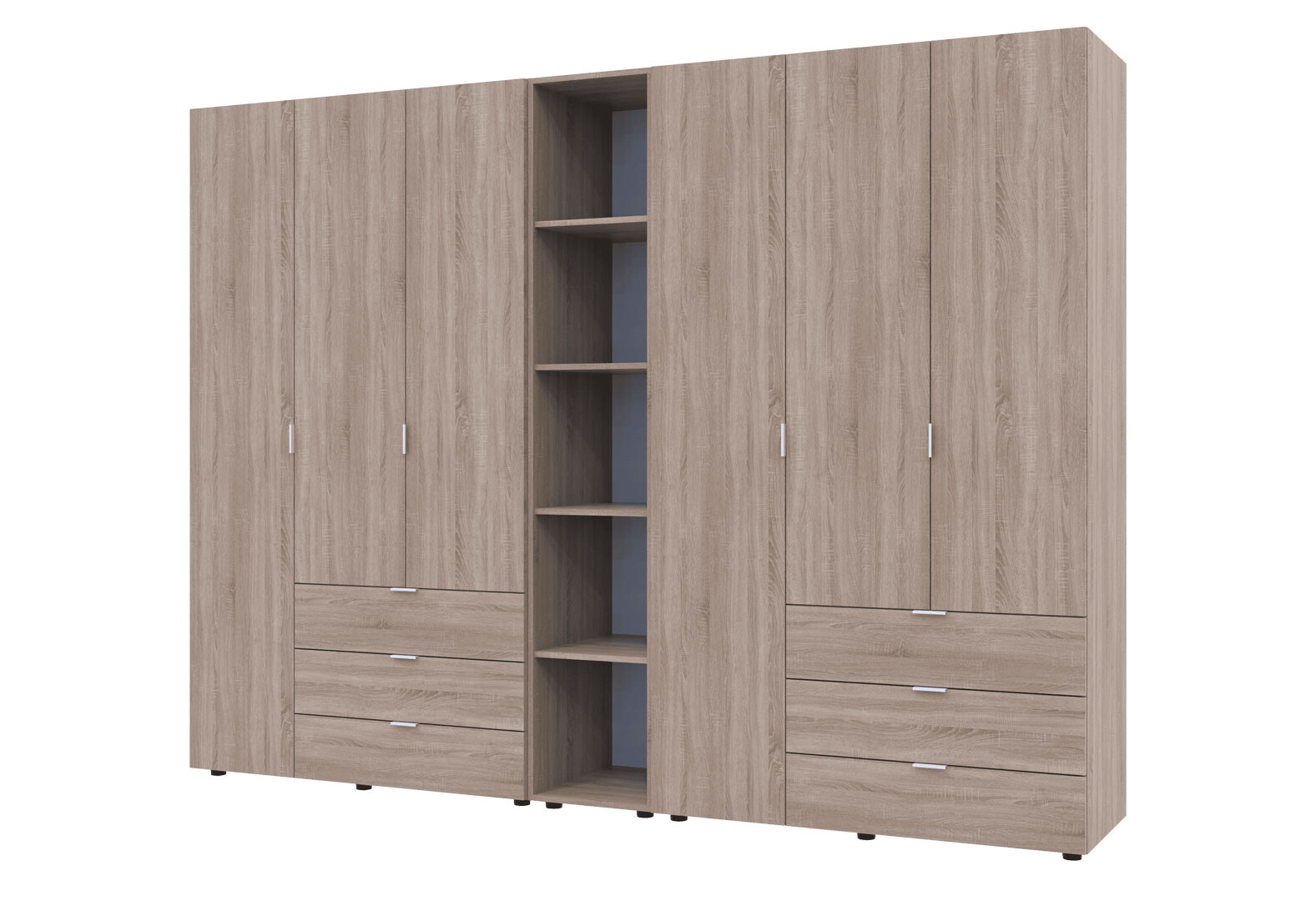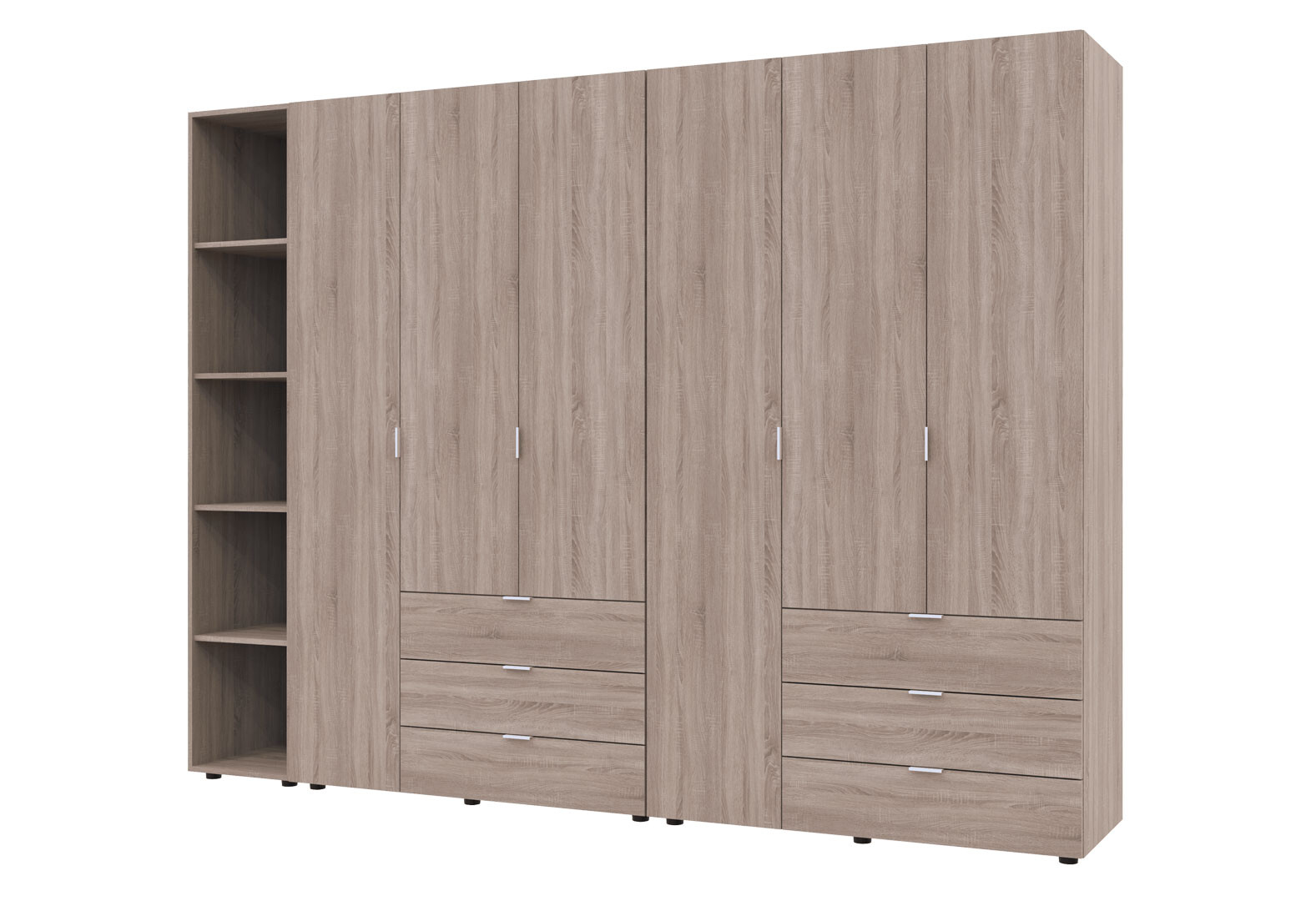 - Шкаф Doros Гелар ДСП два 3-дверных с ящиками и этажеркой 271 см Дуб сонома