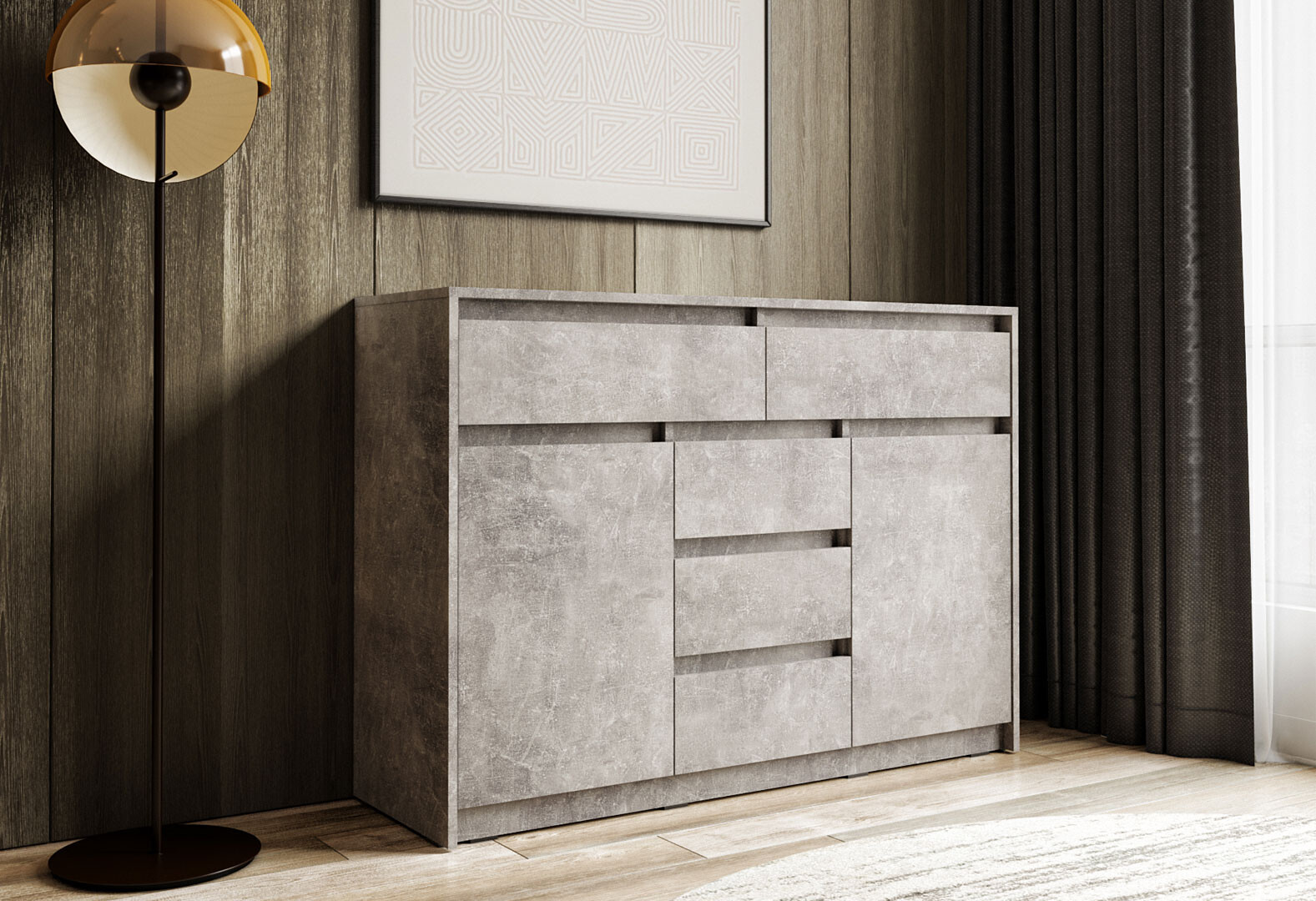 Комод Moreli Т227 с дверцами и ящиками 127 см бетон