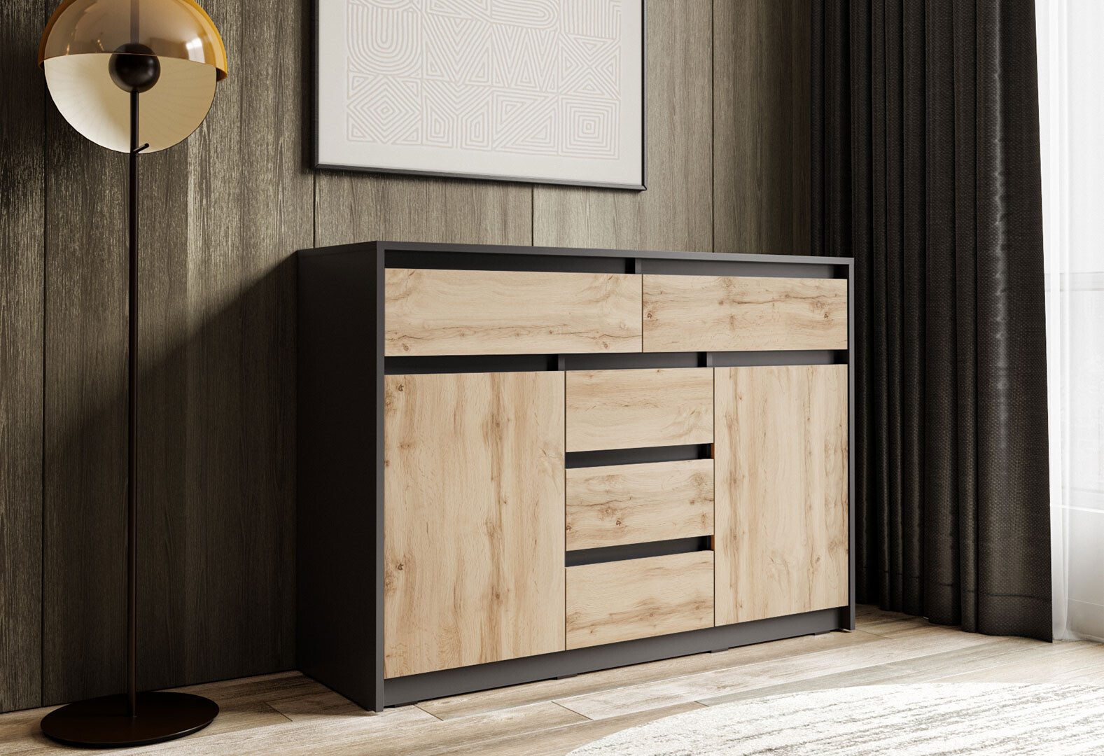 Комод Moreli Т227 с дверцами и ящиками 127 см антрацит / дуб аппалачи