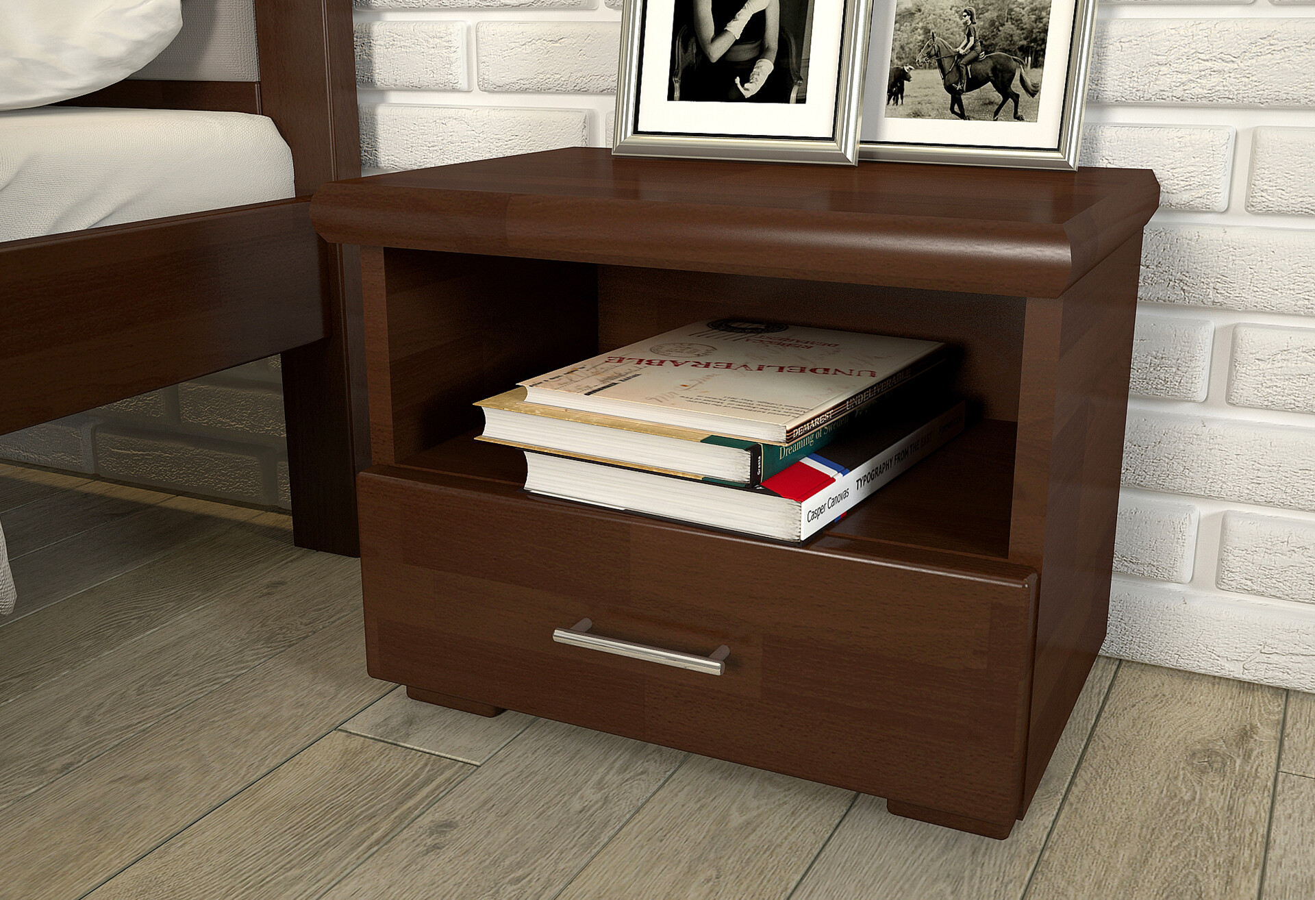 Тумба прикроватная Арбор Древ Стандарт с ящиком 50 см, темный орех сосна