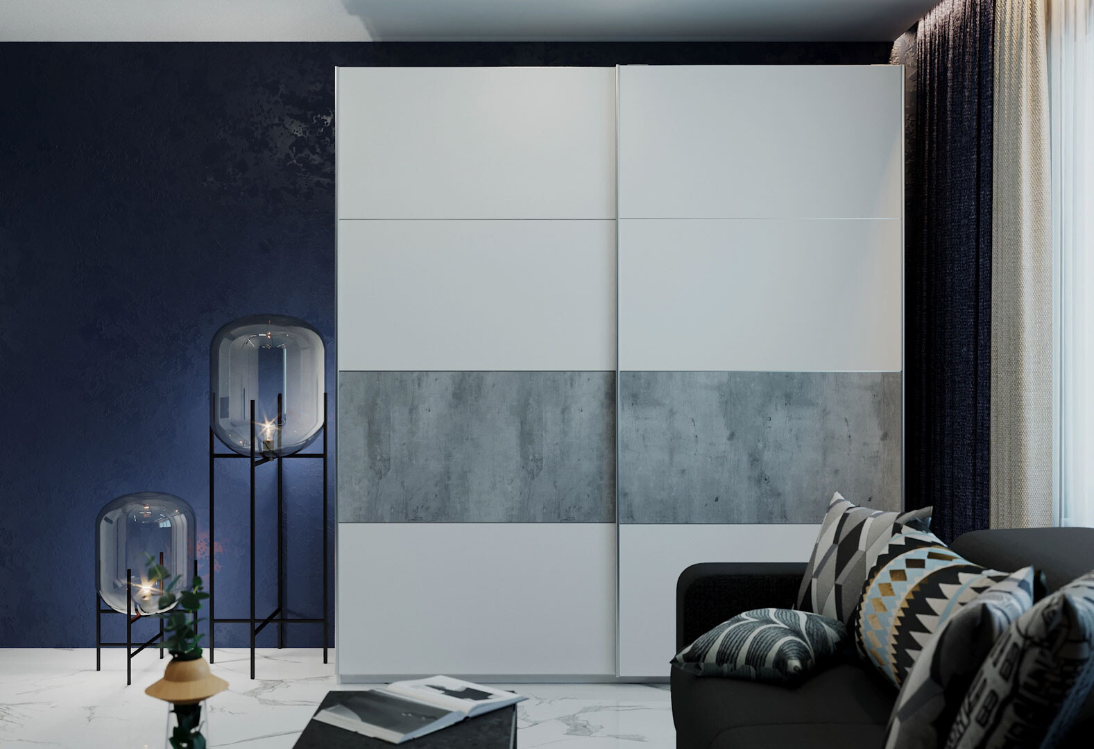 Шкаф-купе Doros G-Caiser / Джи-Кейзер 2-дверный 220 см, антрацит / белый, вставка бетон