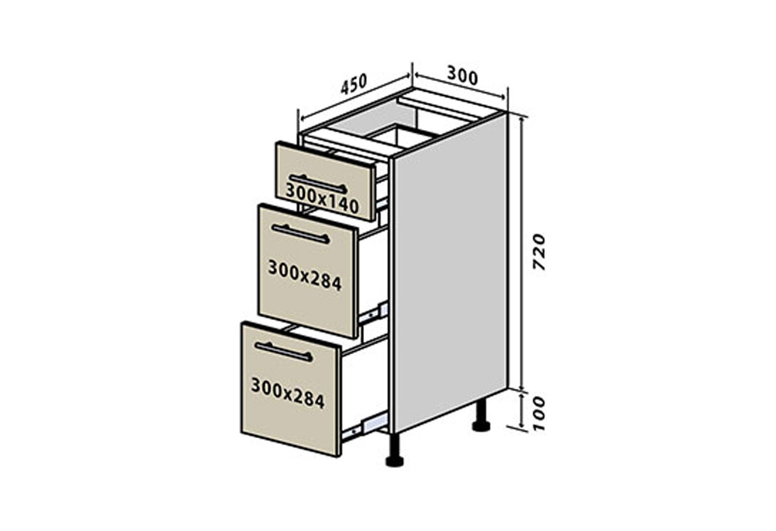 - Н8 Тумба 3Ш 30 Бета (фасад 18 мм) Вип-Мастер