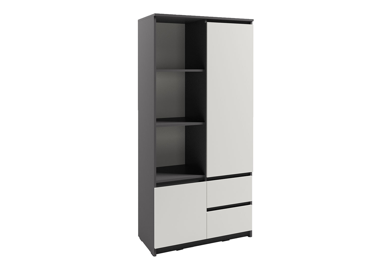 Шкаф-пенал Креденс Фениче Эстетик D-0002 с полками и ящиками 80 см, антрацит / белый