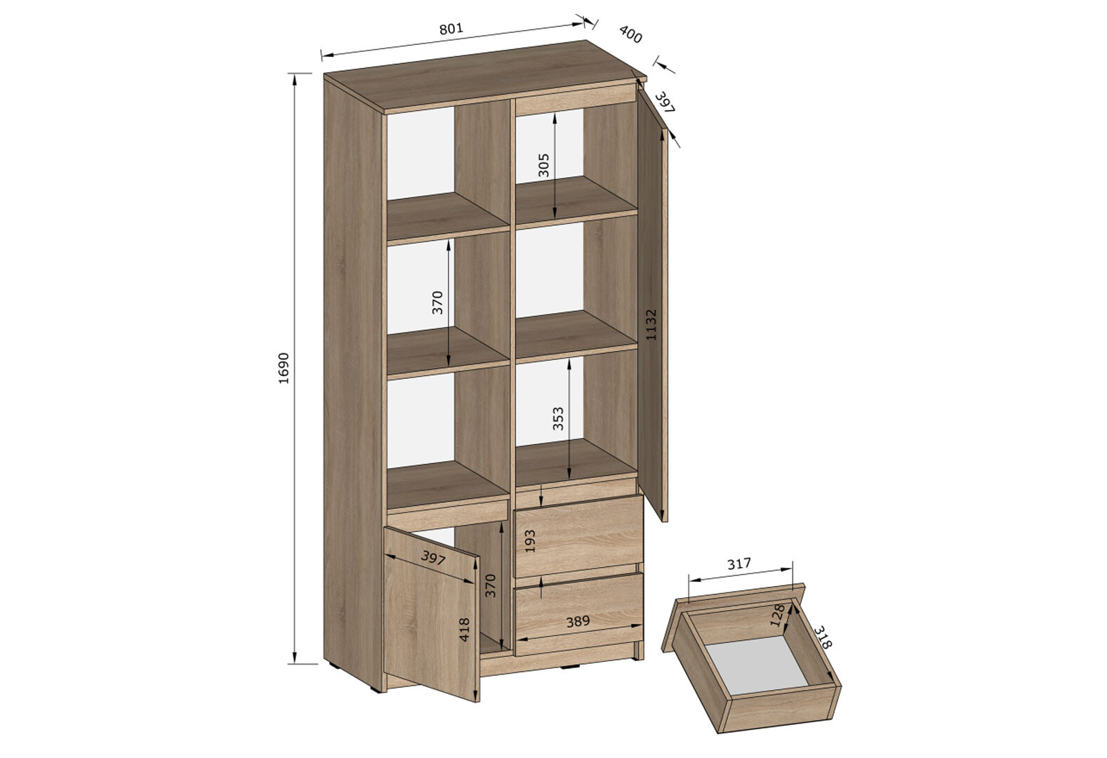 - Шкаф-пенал Креденс Фениче Эстетик D-0002 с полками и ящиками 80 см, антрацит / белый