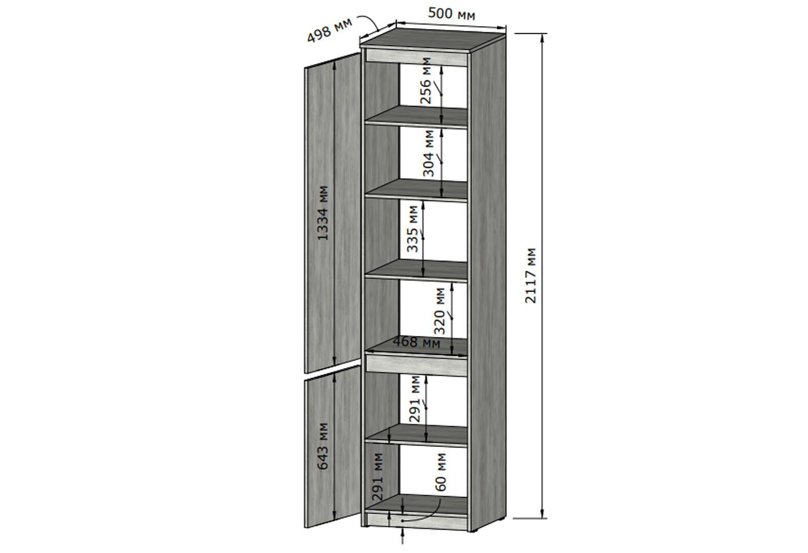 Шкаф-пенал закрытый Moreli T217 (полочки) 50 см, дуб сонома