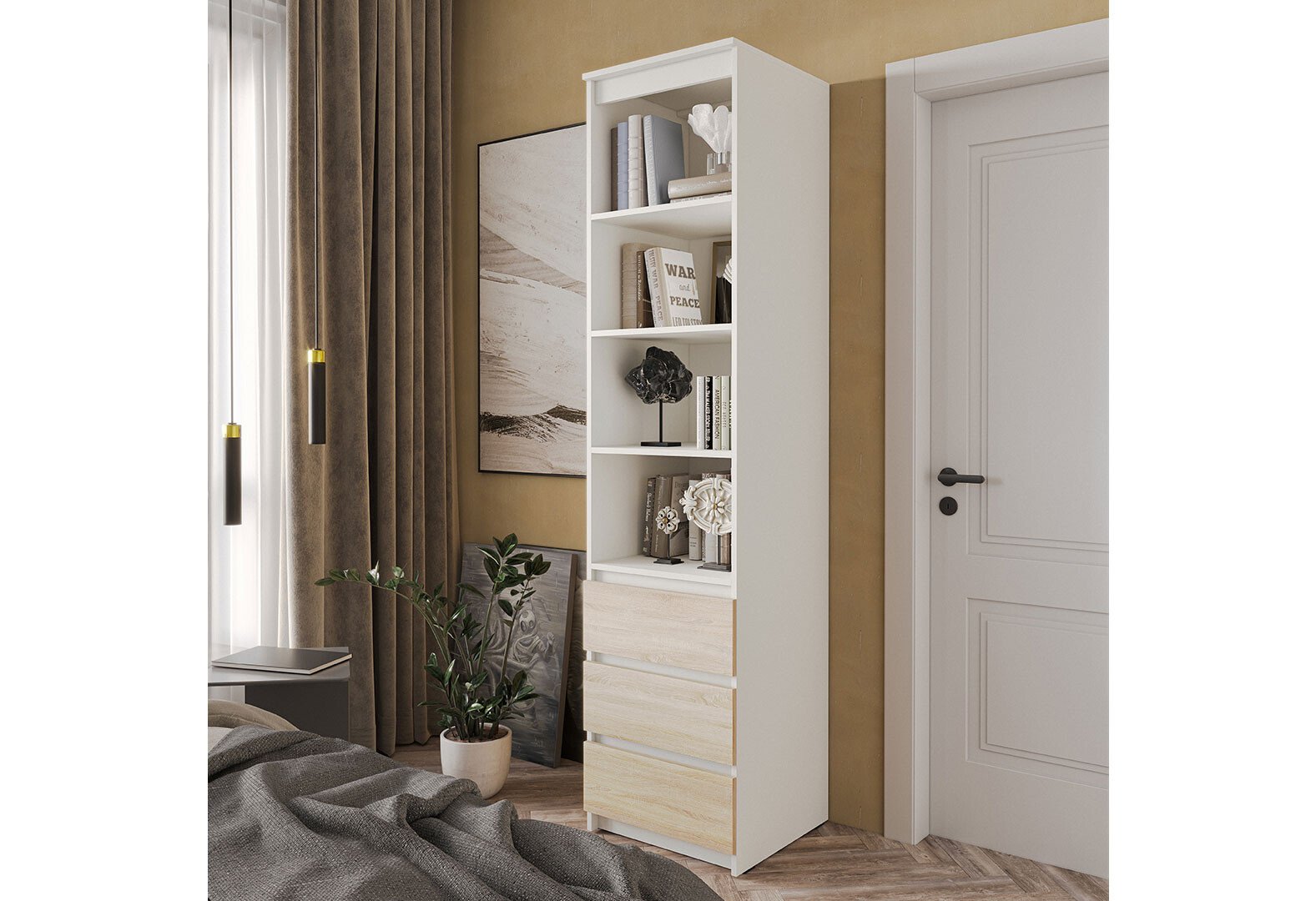 Шкаф-стеллаж комбинированный Moreli T219 с ящиками 50 см, белый / дуб сонома