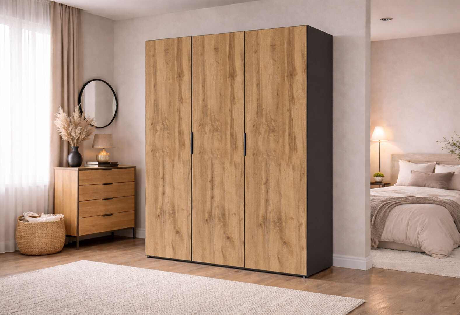 - Шкаф Вип-Мастер Модус с 3 дверями 150 см, антрацит / дуб аппалачи