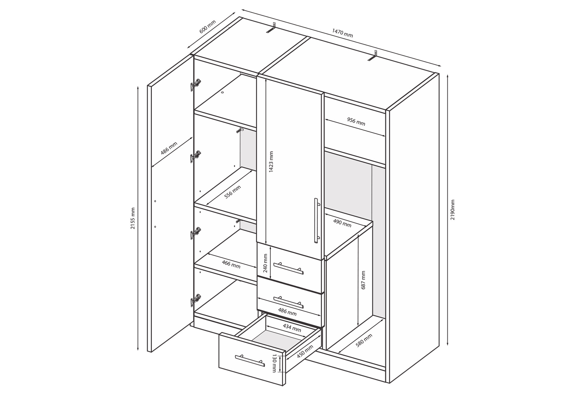 Шкаф MiroMark Магнум 3-дверный з 3 ящиками 147 см, белый