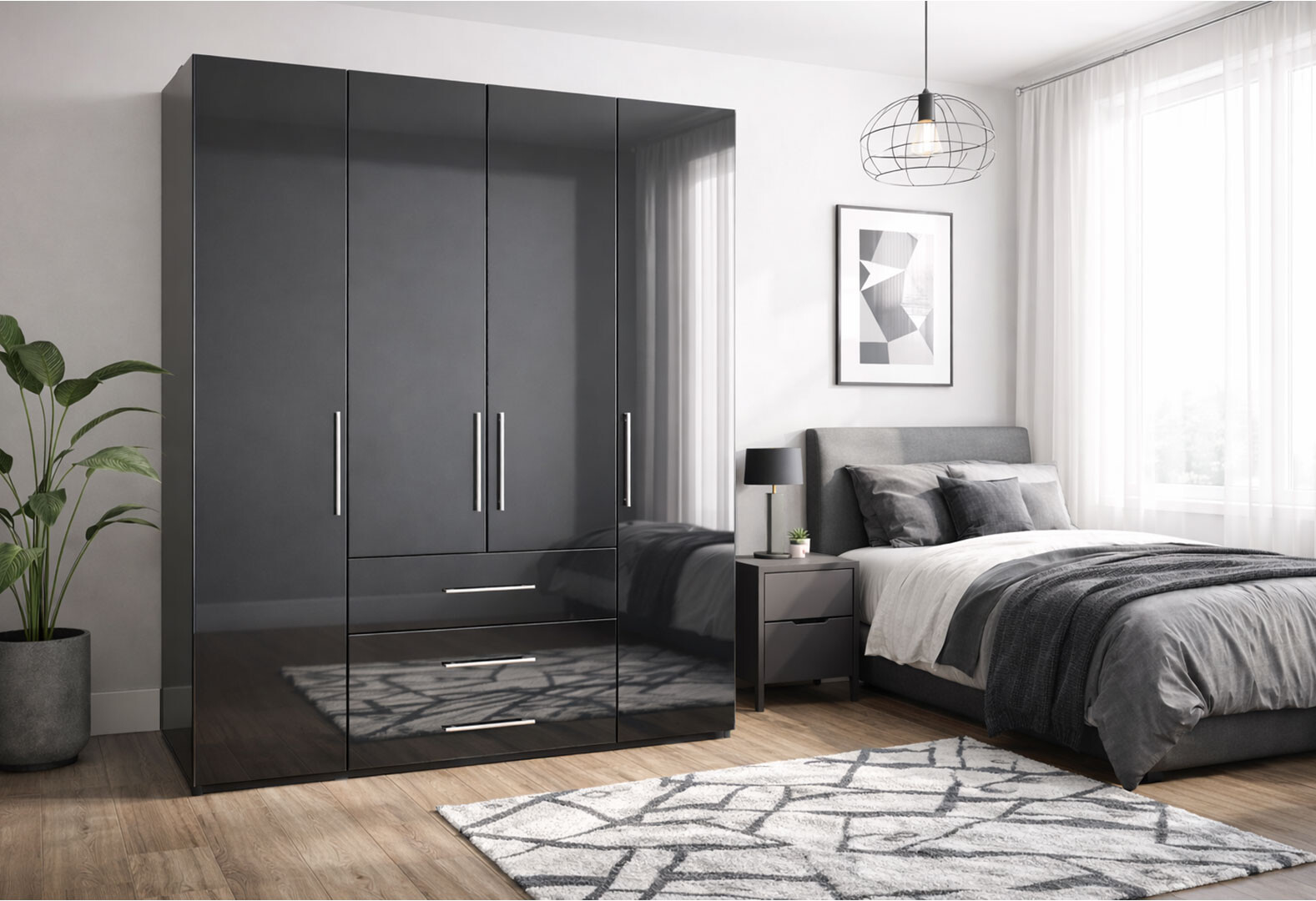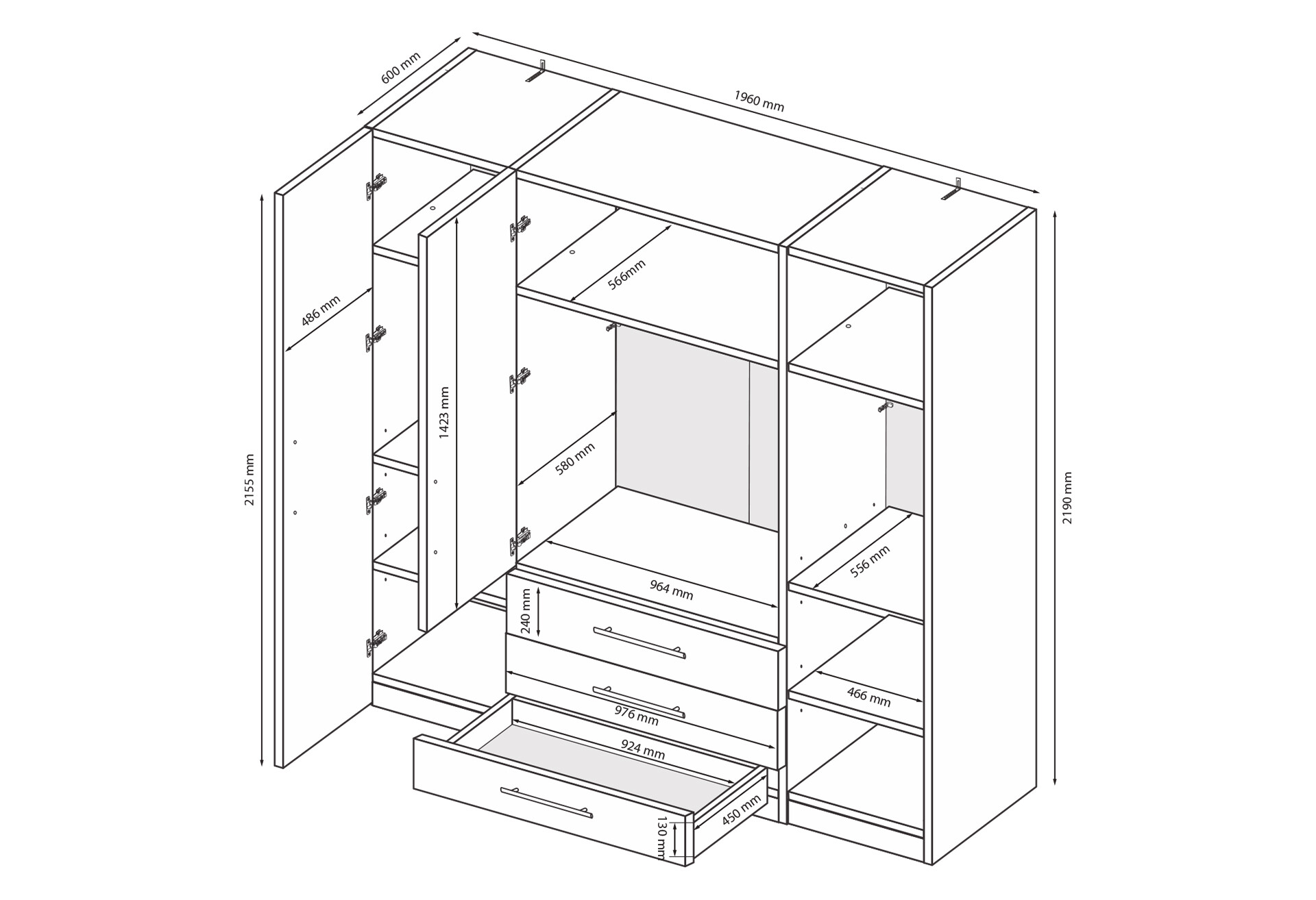 Шкаф MiroMark Магнум 4-дверный з 3 ящиками 196 см, антрацит