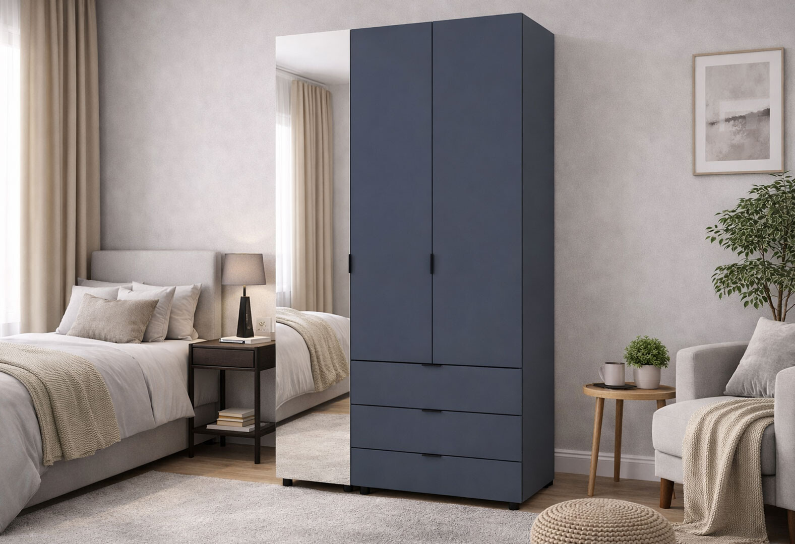 Шкаф Doros Гелар 3-дверная с зеркалом і 3 ящиками 117 см Графит