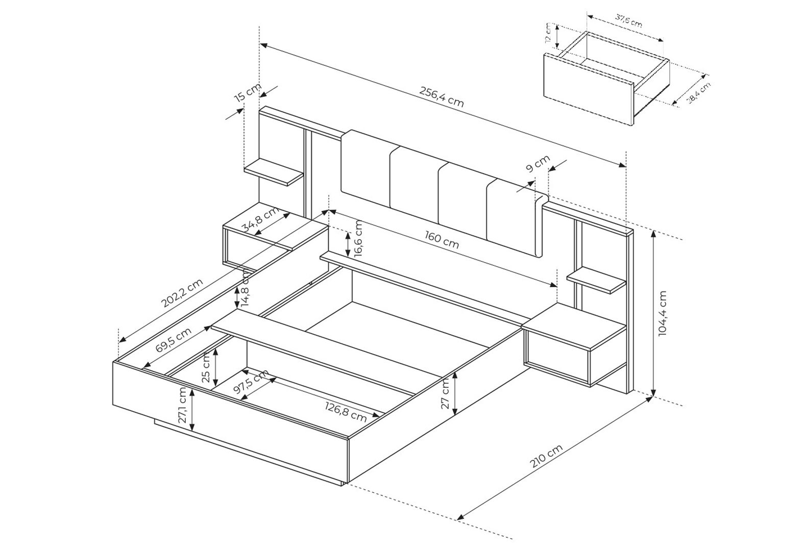 Кровать-подиум Perfect Home Даст / Dast (без вклада) с прикроватными тумбами 160х200 см, бежевый