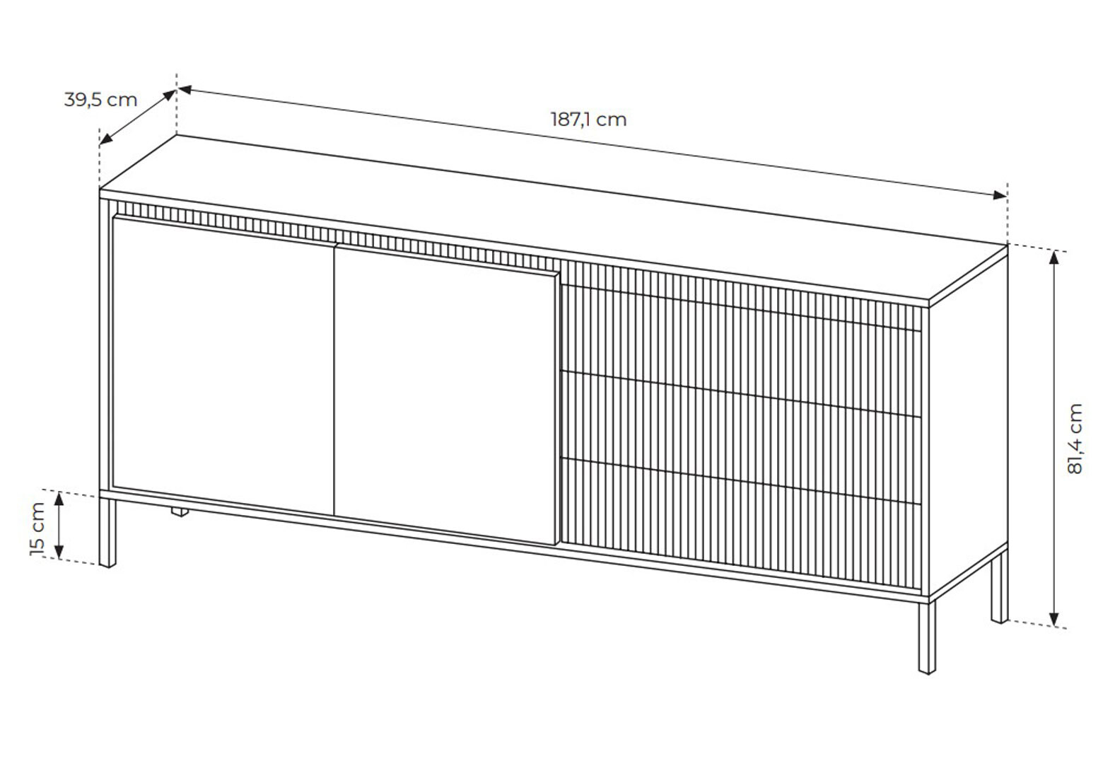 - Комод Perfect Home Сенсо / Senso 2-дверный с 3 ящиками 187 см, черный