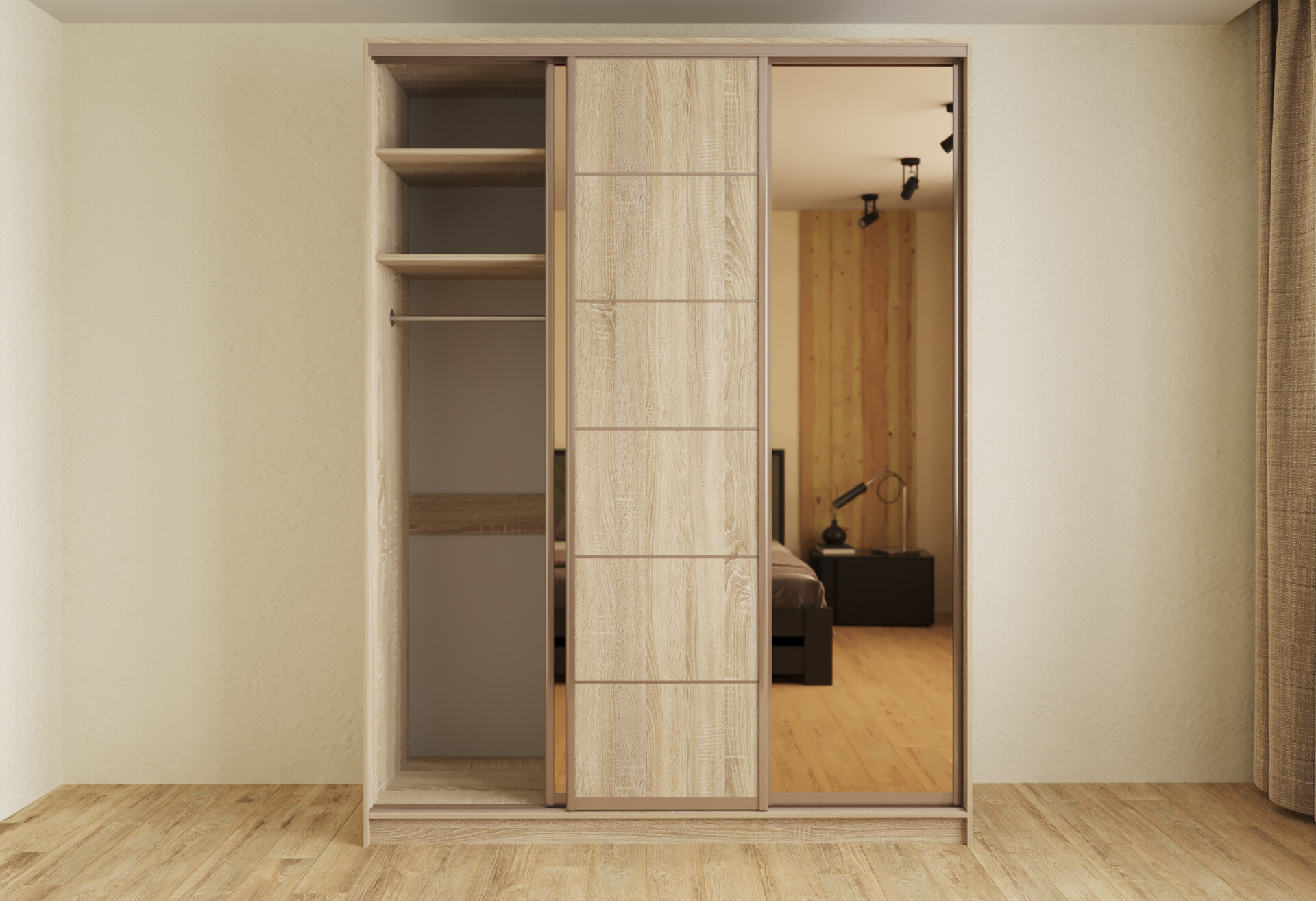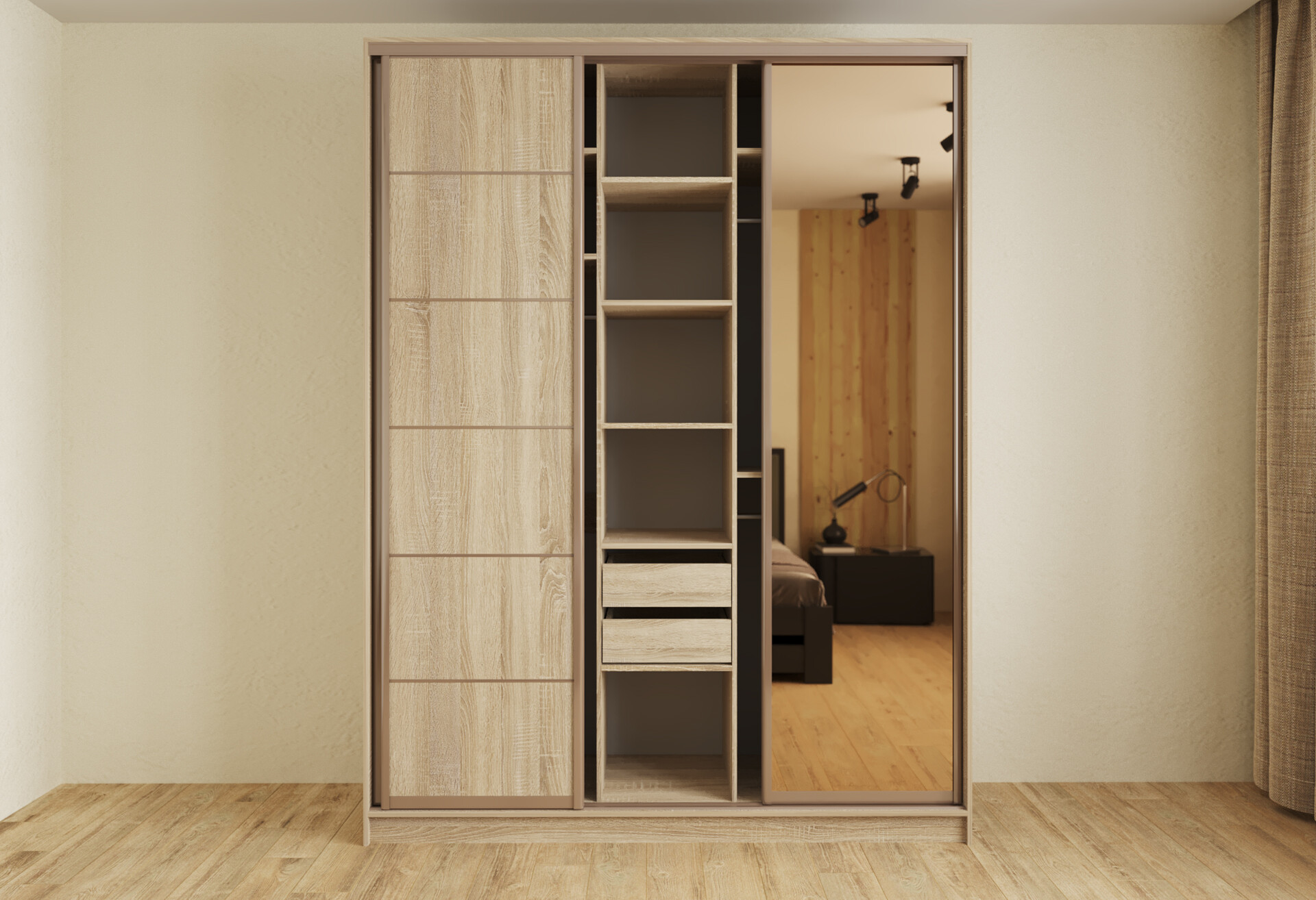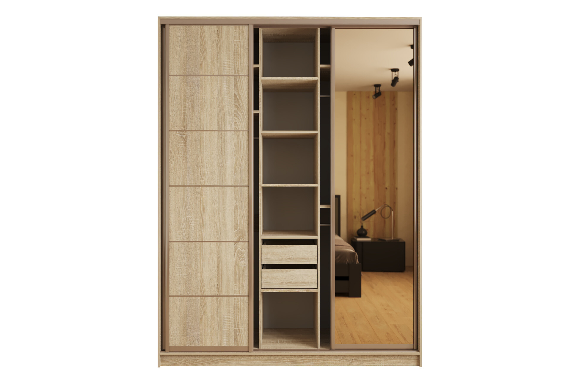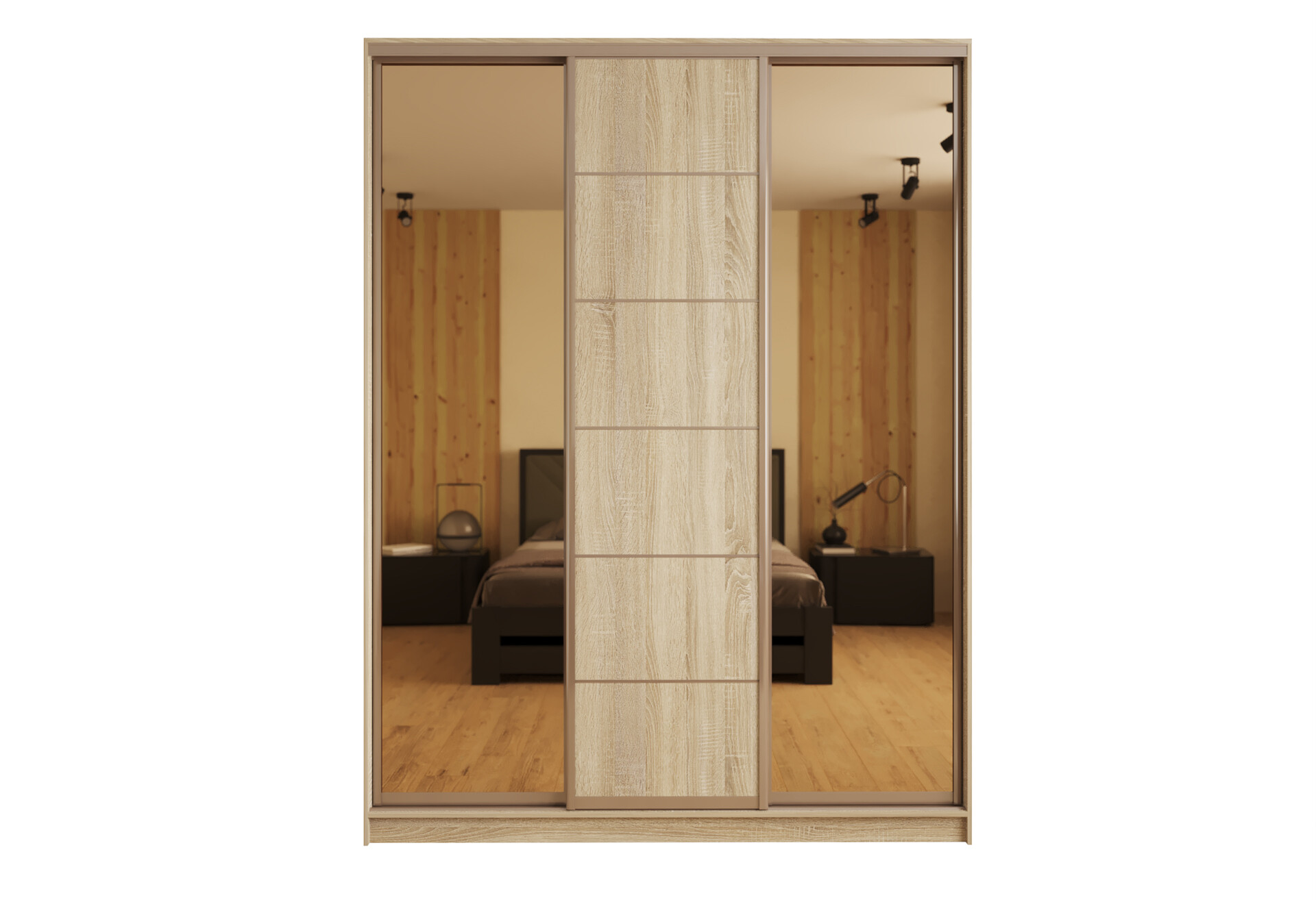 Шкаф-купе Киевский Стандарт 3-дверный с зеркалами и 2-мя ящиками 180 см дуб сонома