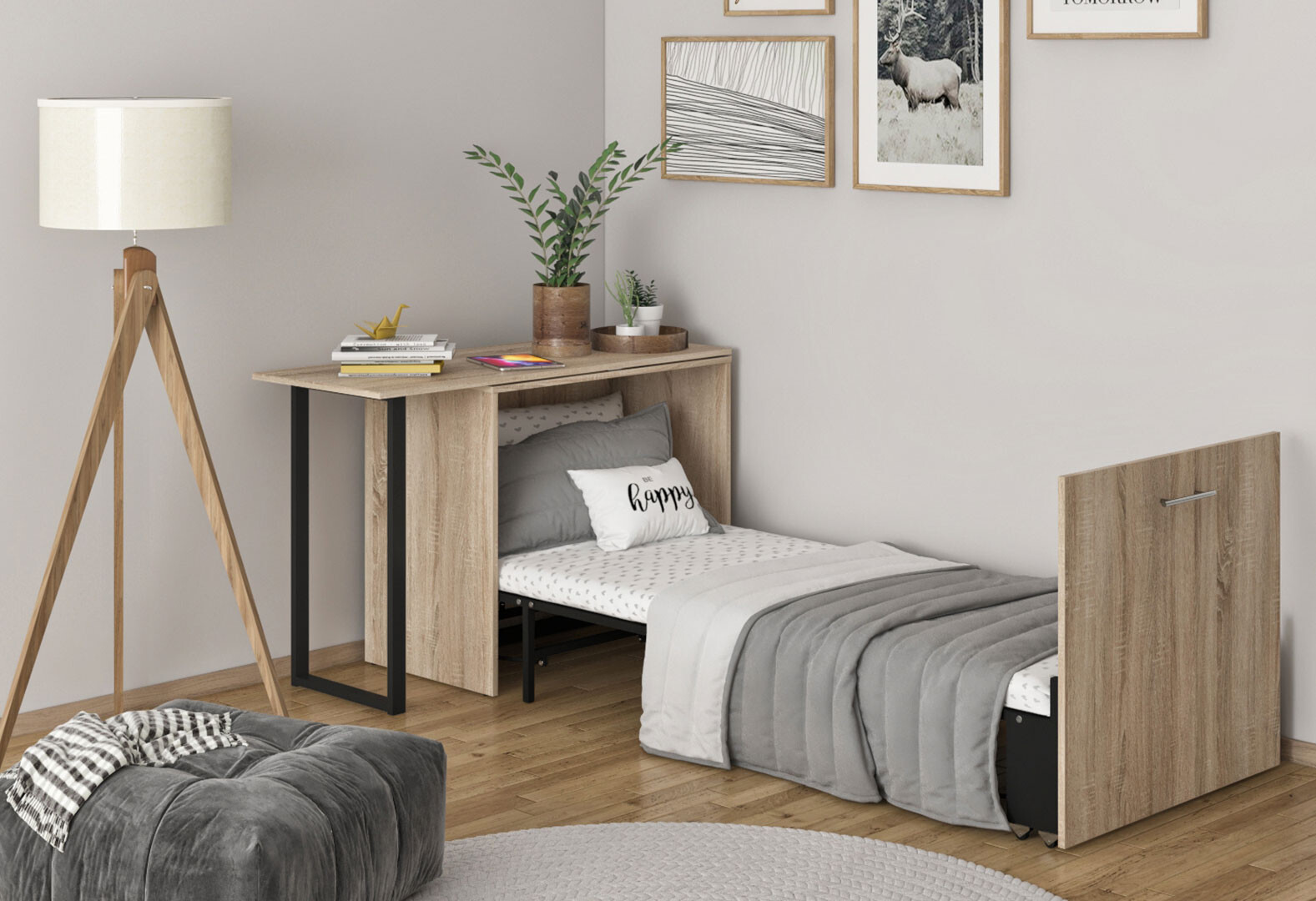 Кровать-трансформер Knap Knap Sirim / Сирим-D (3 в 1) 80х200 см со столом, дуб сонома