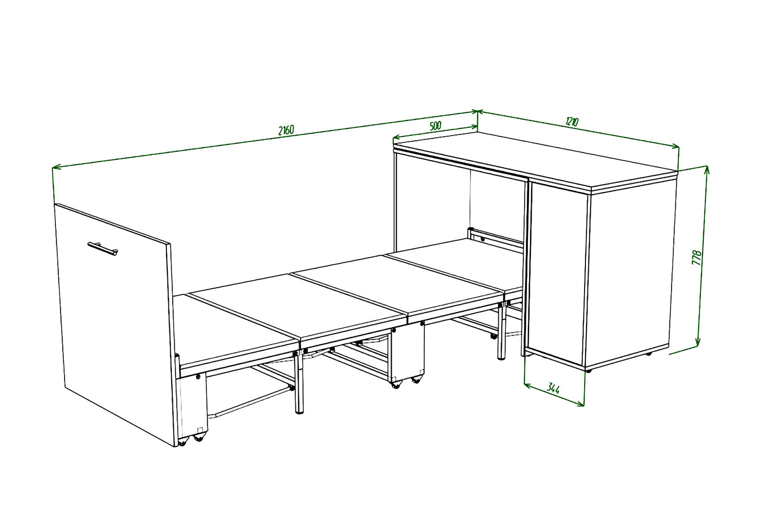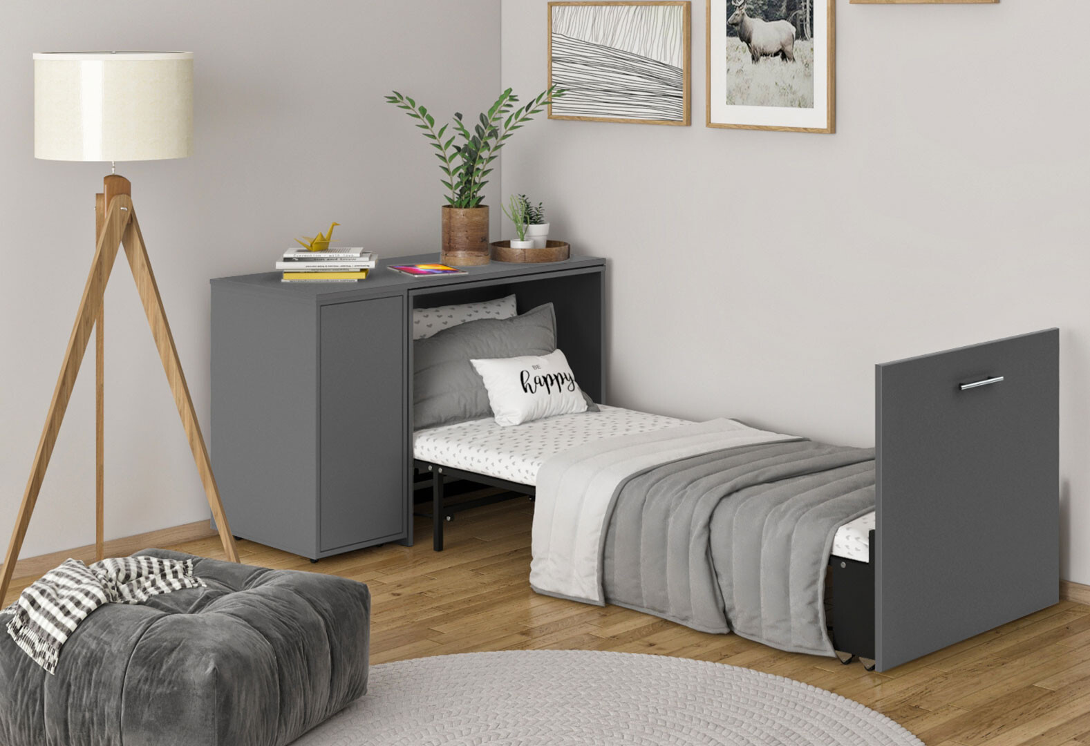 Кровать-трансформер Knap Knap Sirim / Сирим-C3 (4 в 1) 80х200 см со столом и тумбой, графит серый