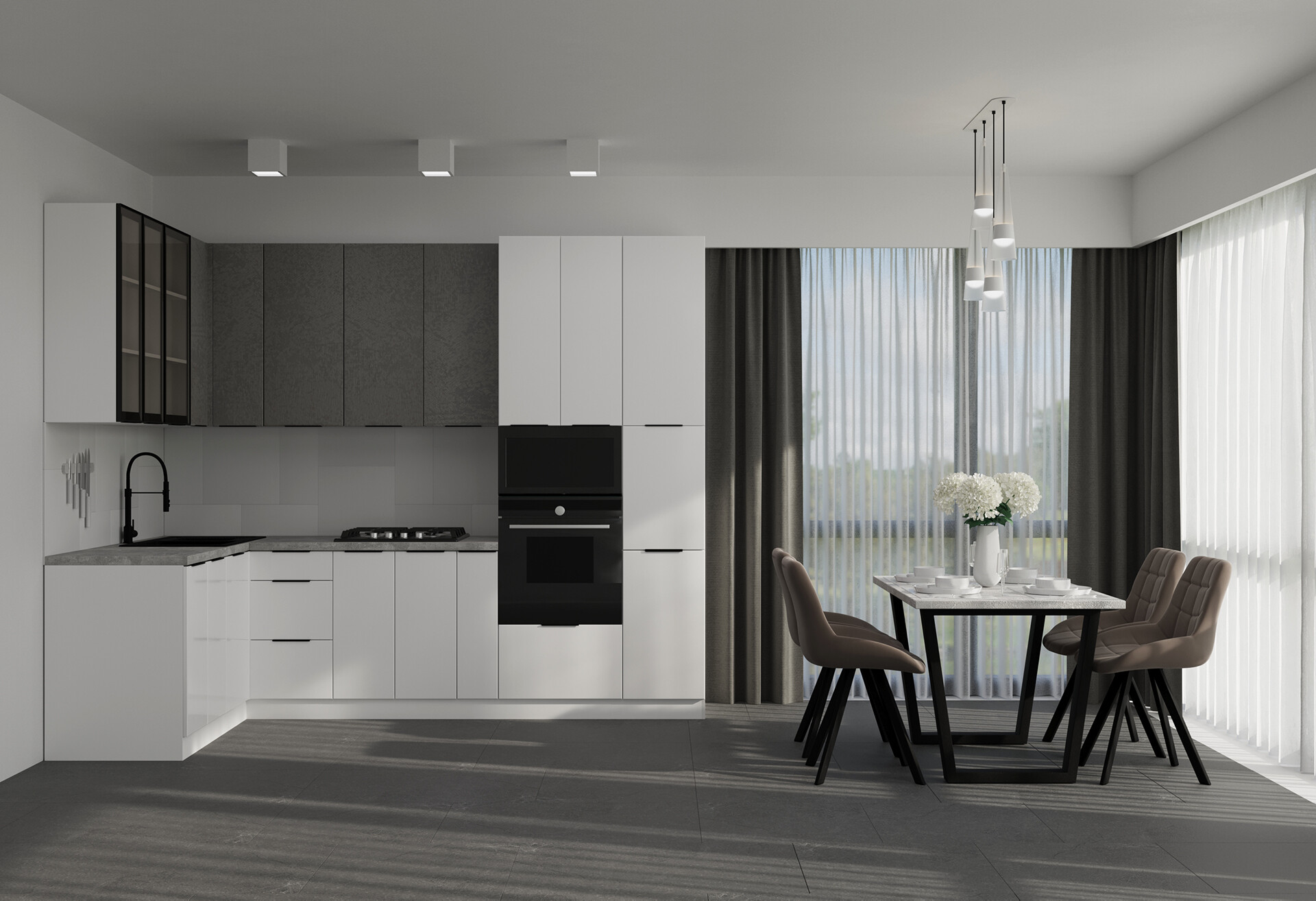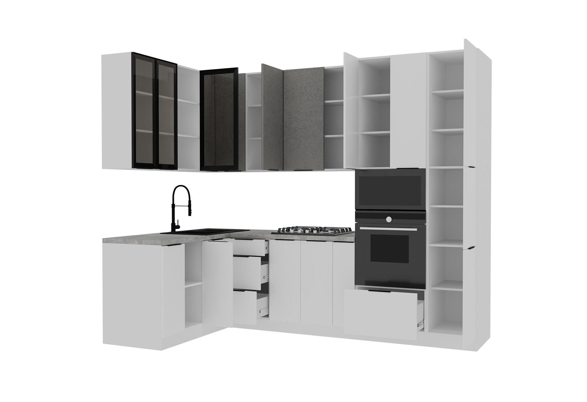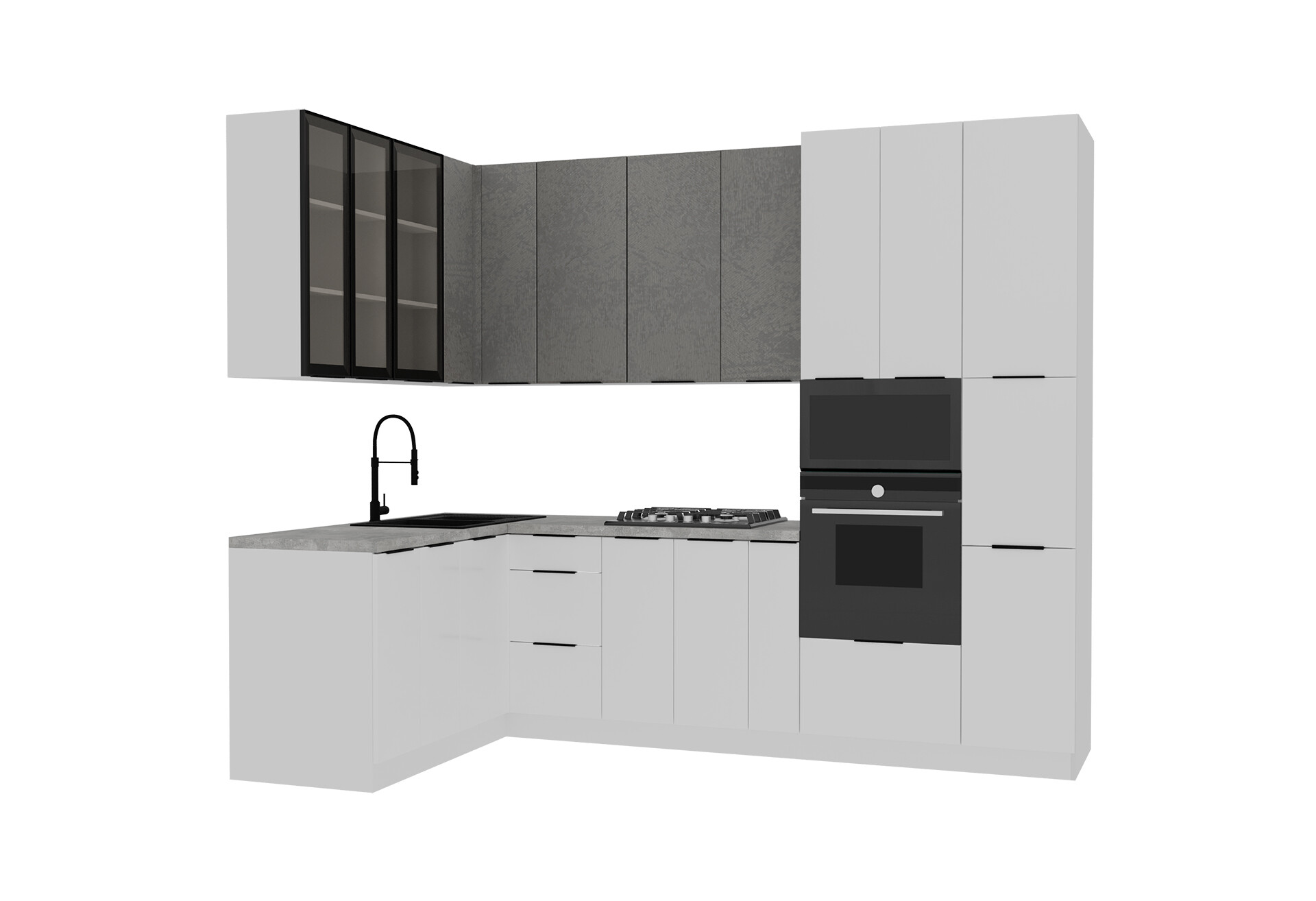 - Угловая кухня Диплос / Diplos Blum 1.6х2.8 Мебель Стар, бетон серый / белый agt