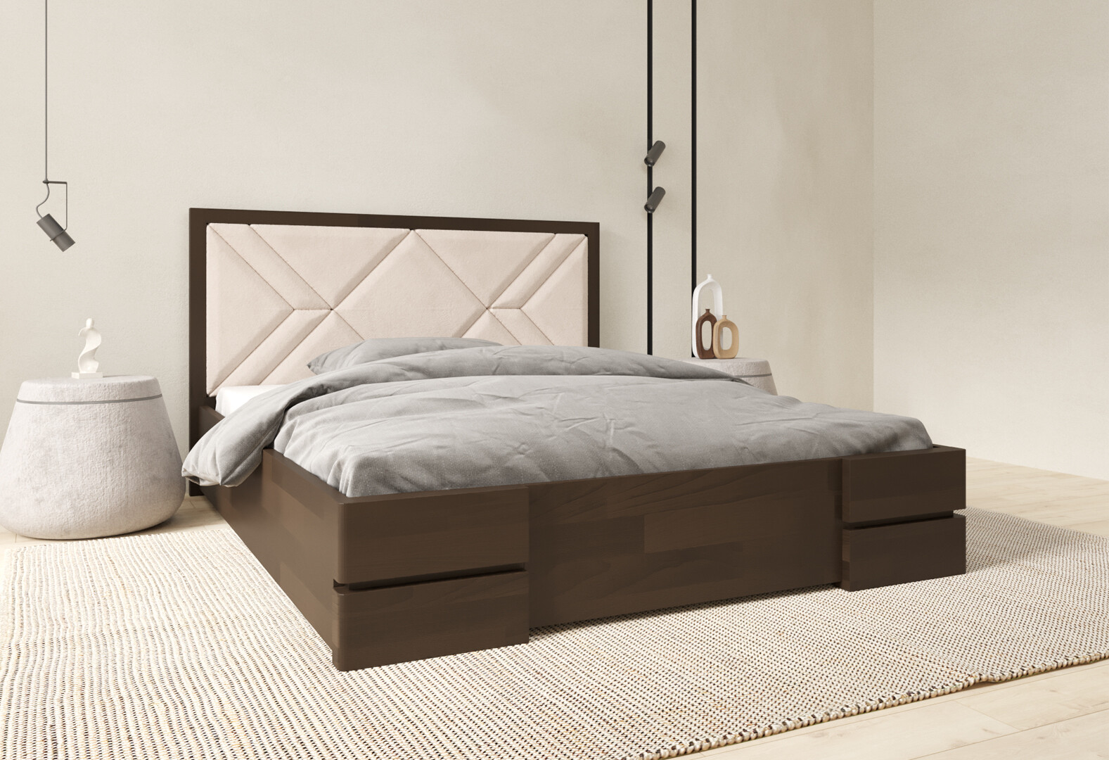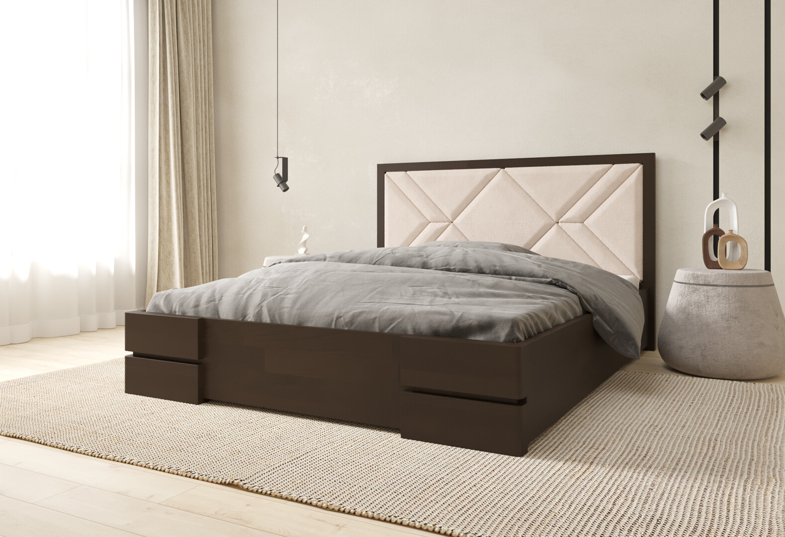 Кровать-подиум Arbor Drev Елит 160 см тк. Лагуна 3, темный орех, сосна