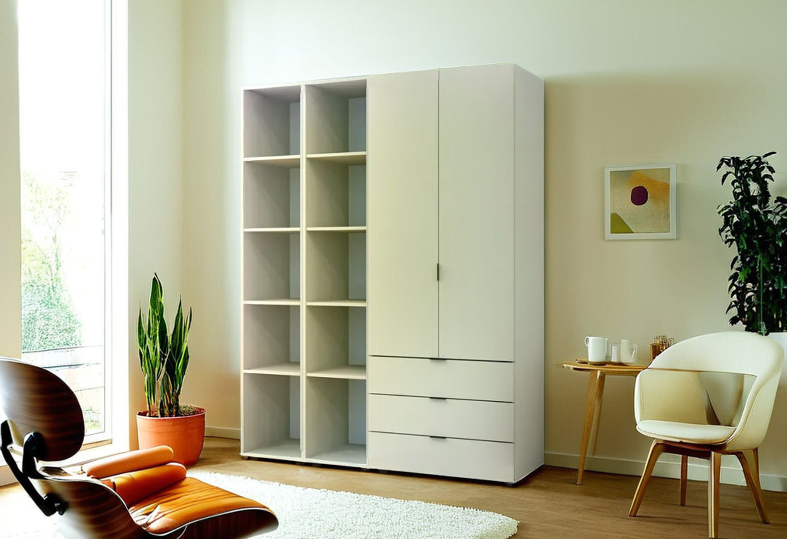 - Шкаф Doros Гелар 2 ДСП 2-дверная с 3 ящиками и 2 этажерками 154 см Кашемир