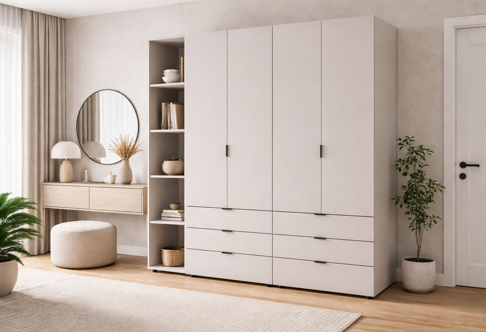 - Шкаф Doros Гелар 2+2 ДСП 4-дверная с 6 ящиками и этажеркой 193 см Кашемир
