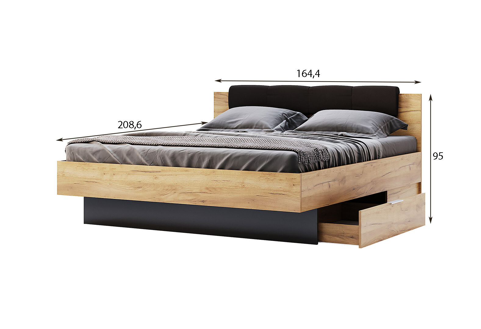 Кровать MiroMark Луна с вкладом и матрасом София Нью 160х200 см с ящиками, лава/дуб крафт