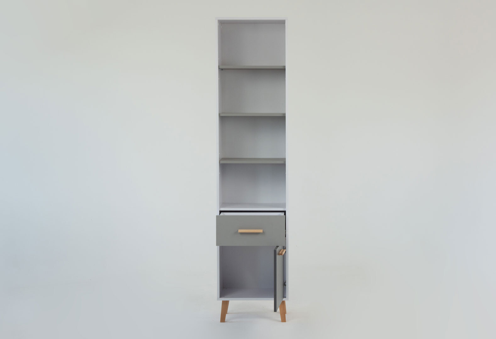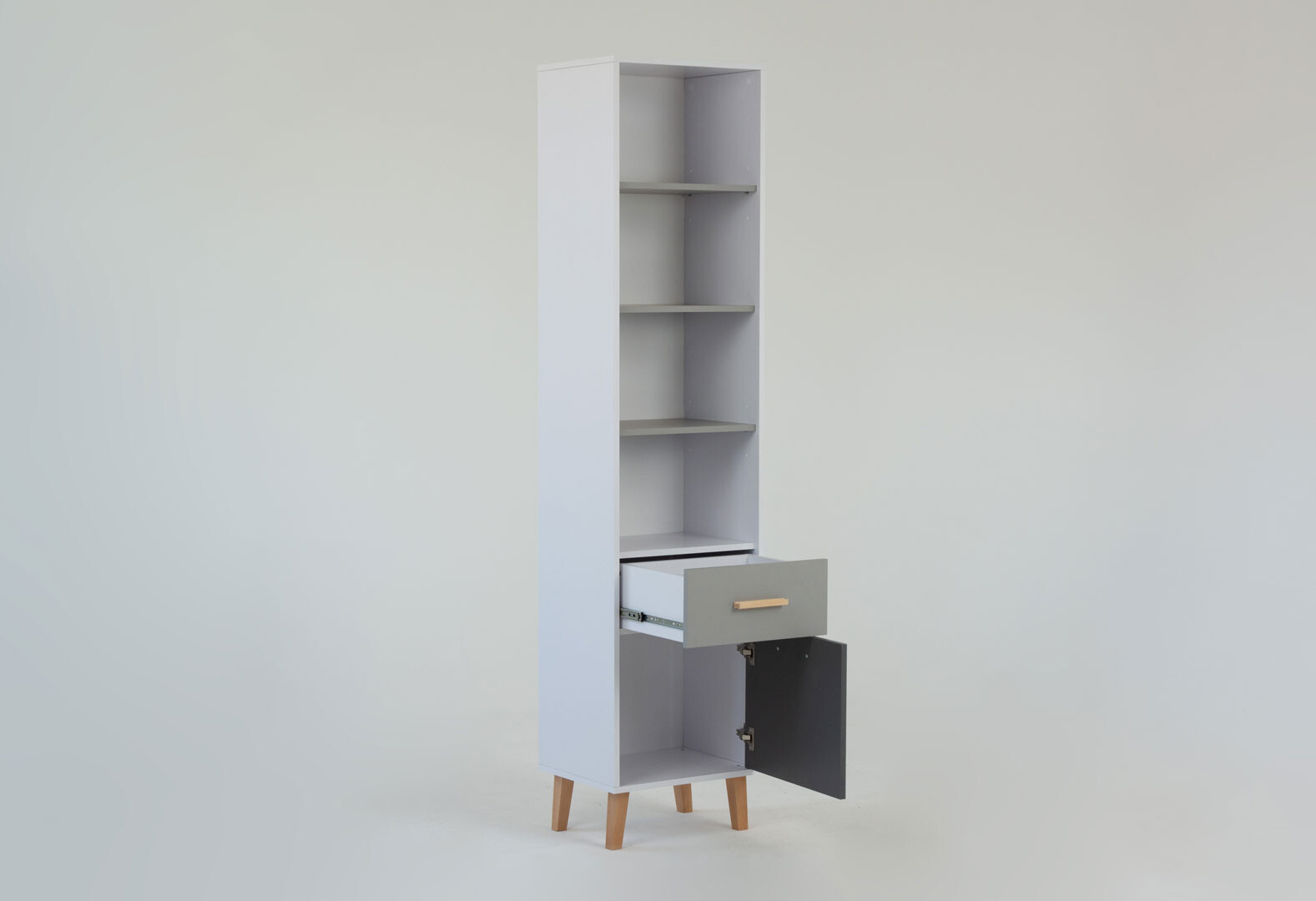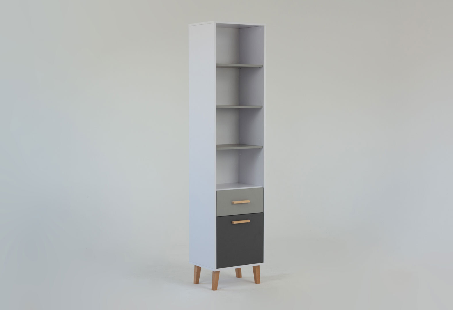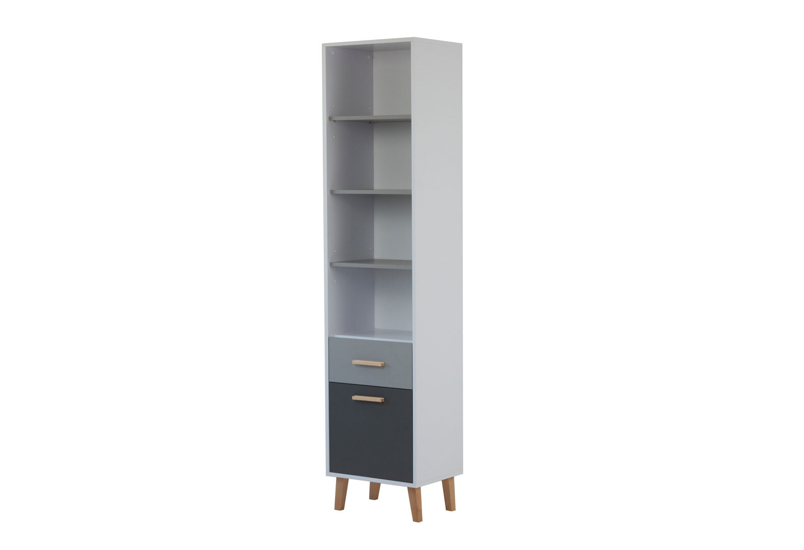 Шкаф-стеллаж открытый VMV holding Тимми / Timmy с дверкой и ящиком 47 см, белый / графит / шиншилла