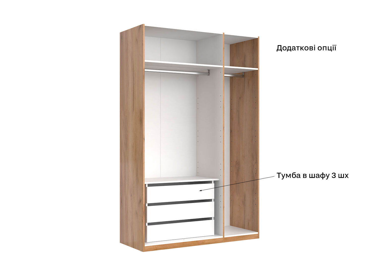 Шкаф МироМарк Асти 3-дверный 140 см Дуб крафт/Белый серия Н