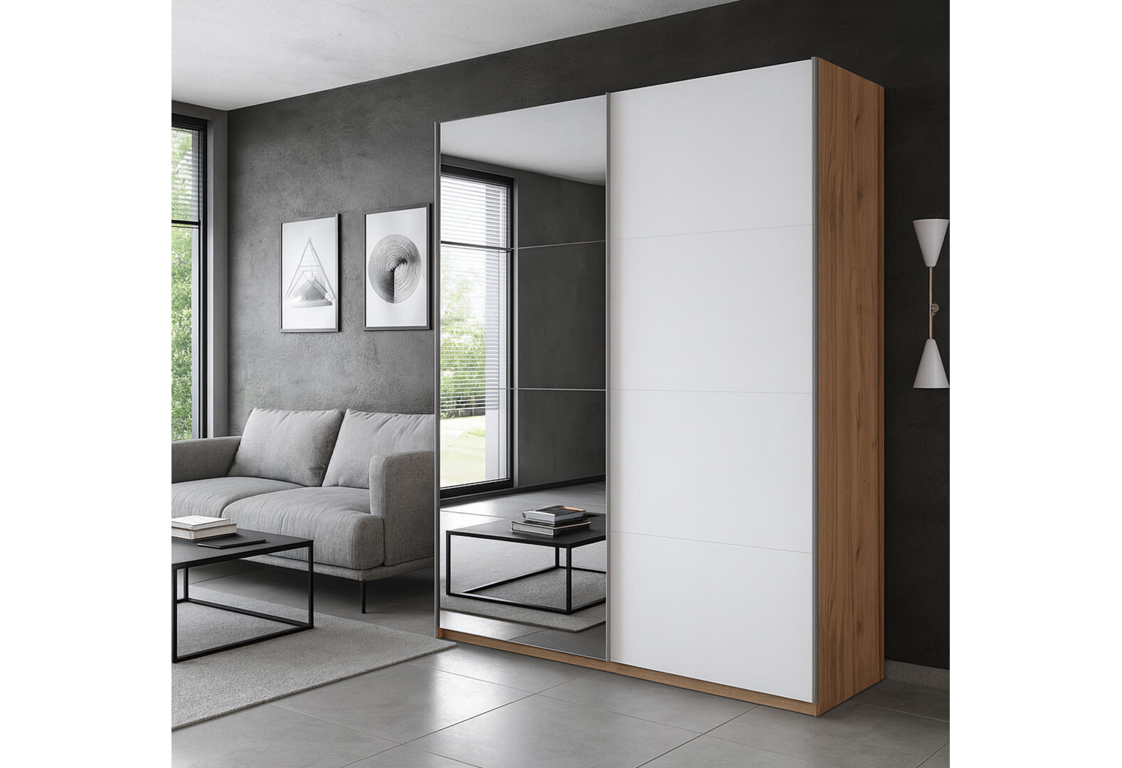 Шкаф-купе МироМарк Асти с зеркалом 2-дверный 150х210 см Глянец Белый серия Н