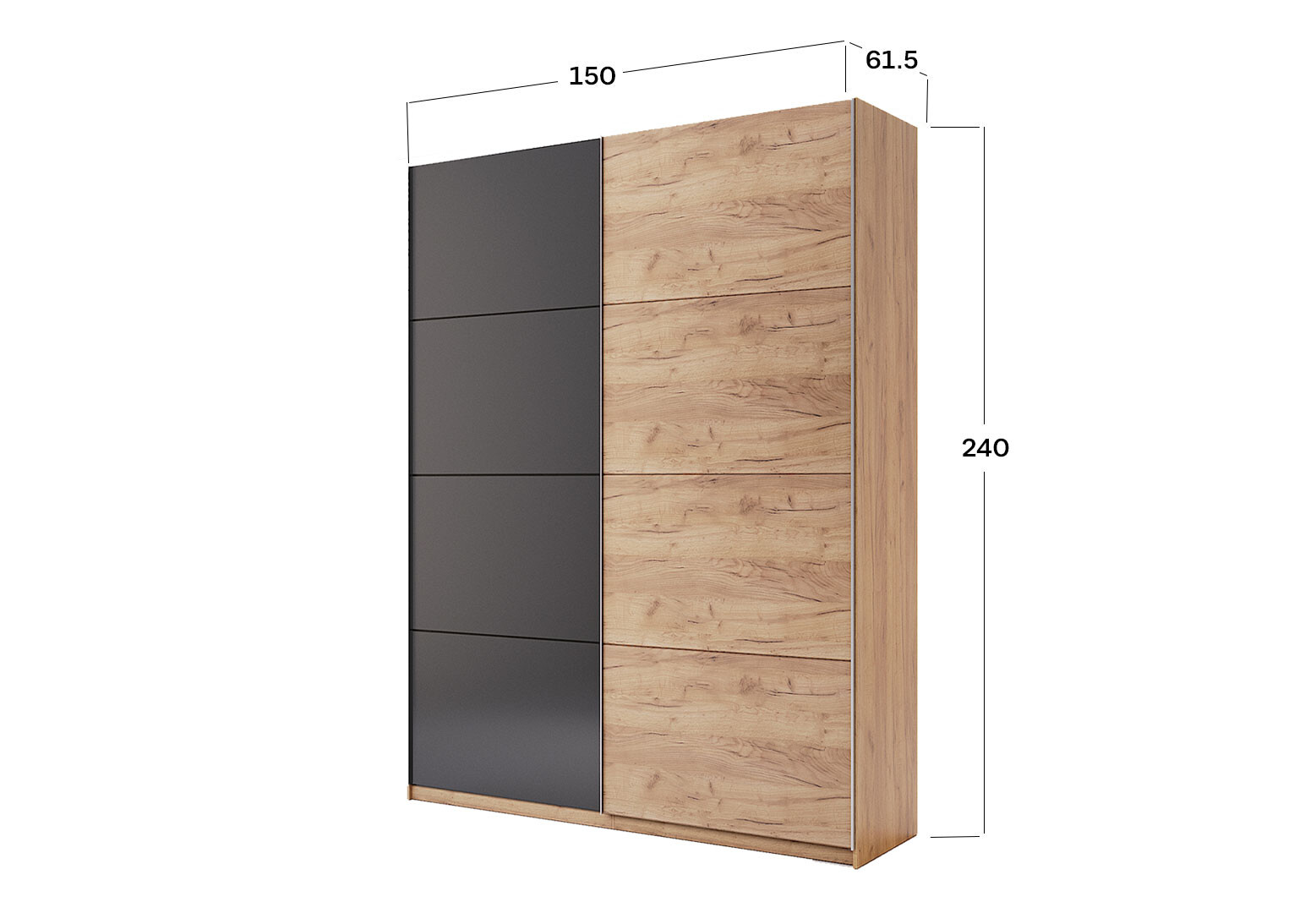 Шкаф-купе МироМарк Луна 2-дверный 150х240 см фасады Дуб Крафт/Мат Лава, серия Н