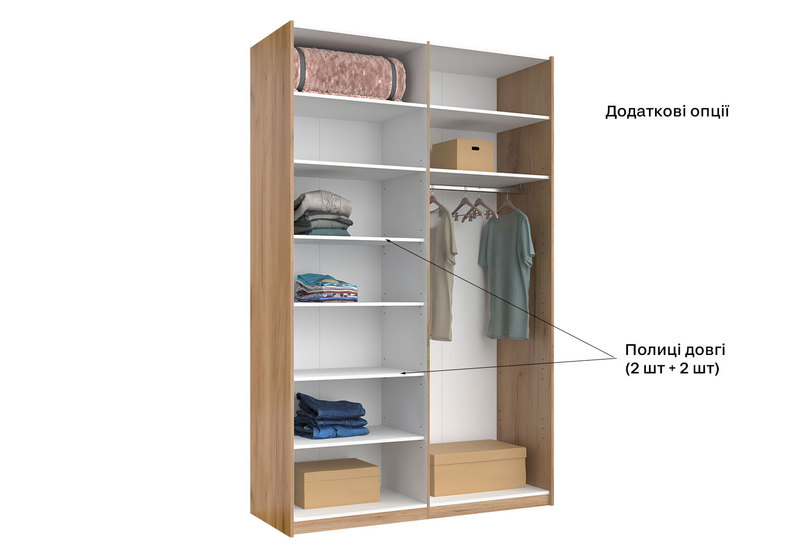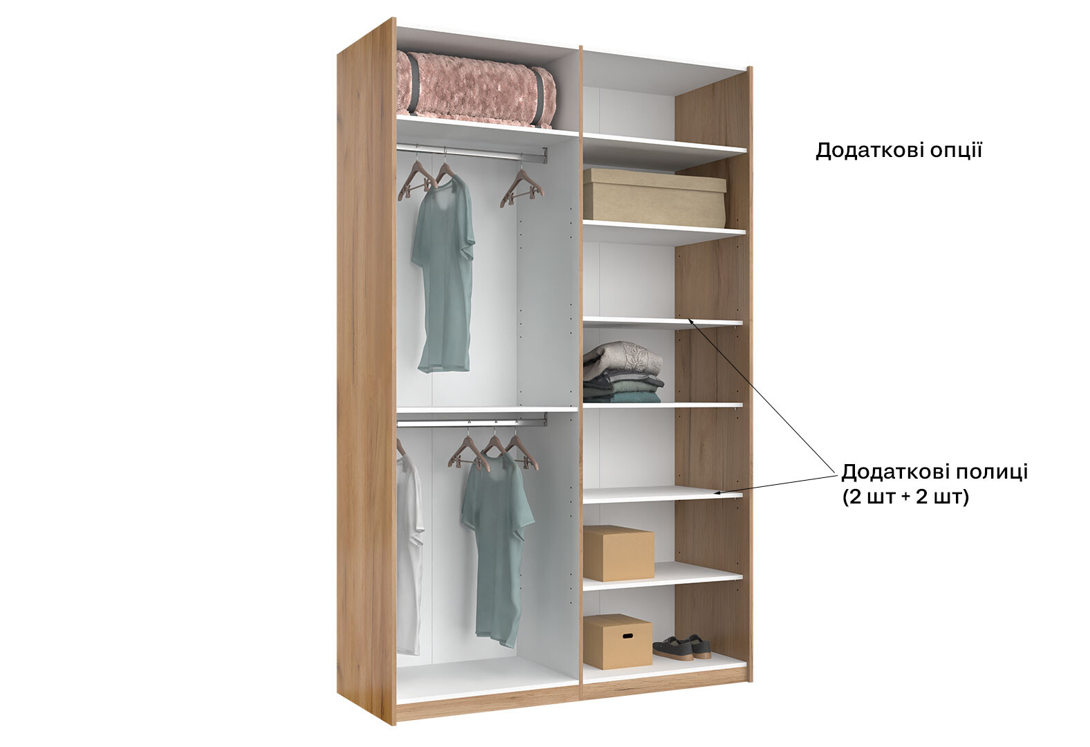 - Шкаф-купе МироМарк Луна 2-дверный с зеркалом 150х240 см Дуб Крафт/Мат Лава, серия Н