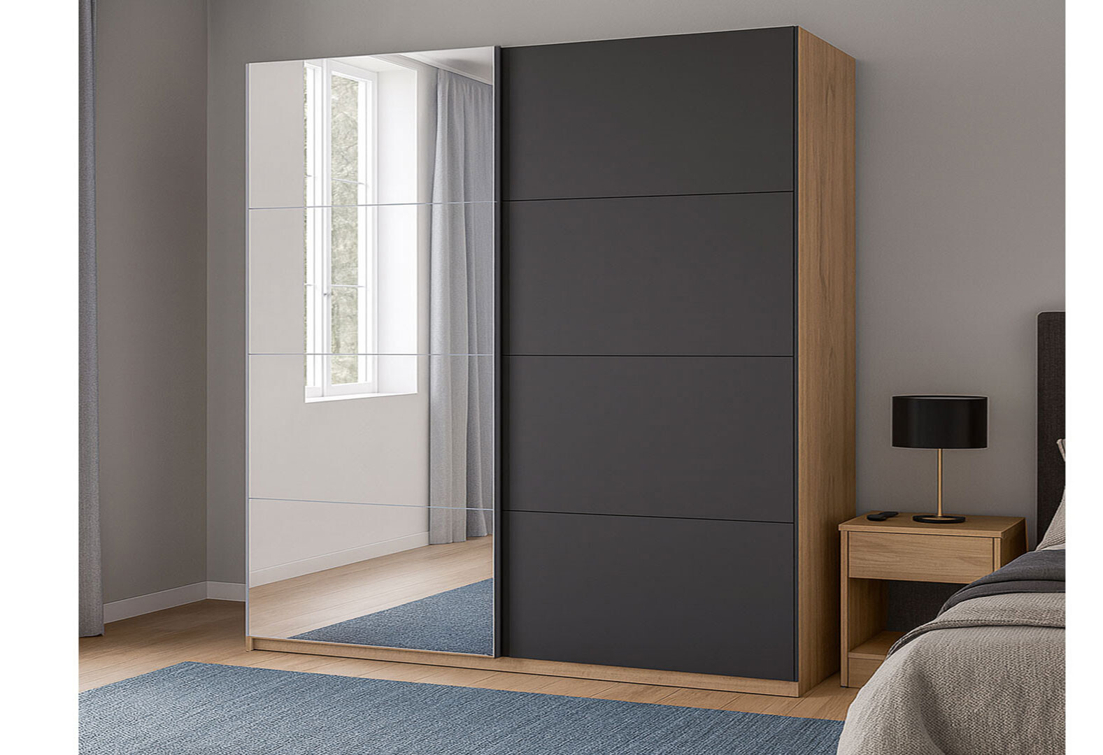 Шкаф-купе МироМарк Луна 2-дверный с зеркалом 250х210 см фасад Лава, серия Н