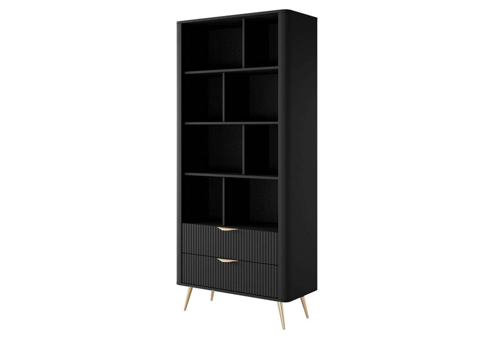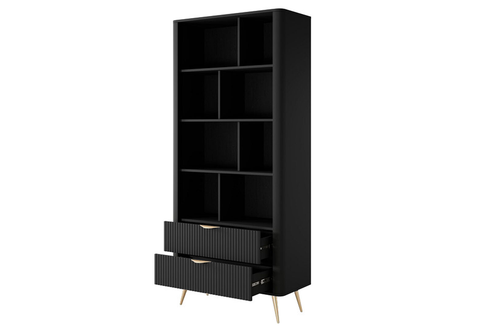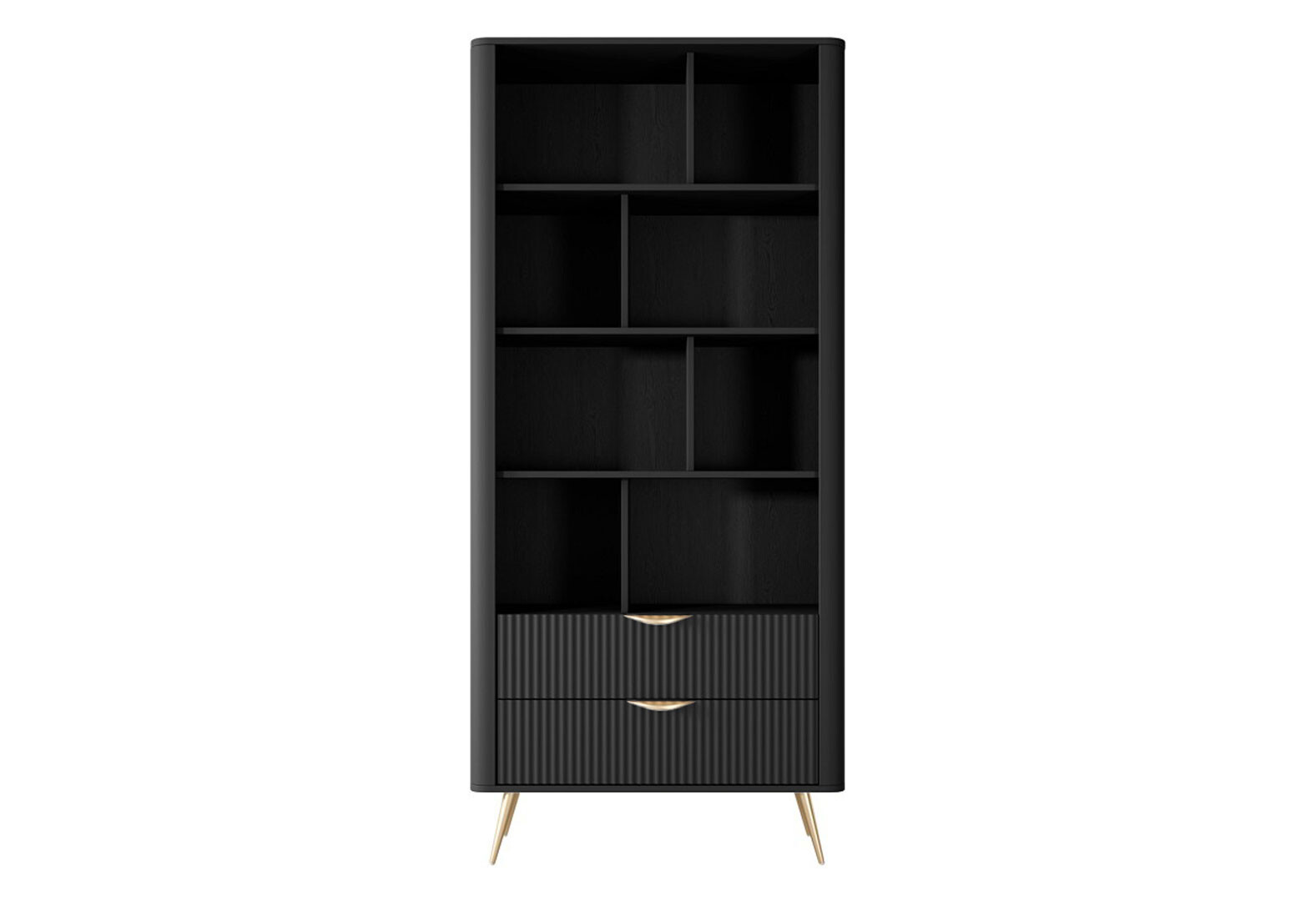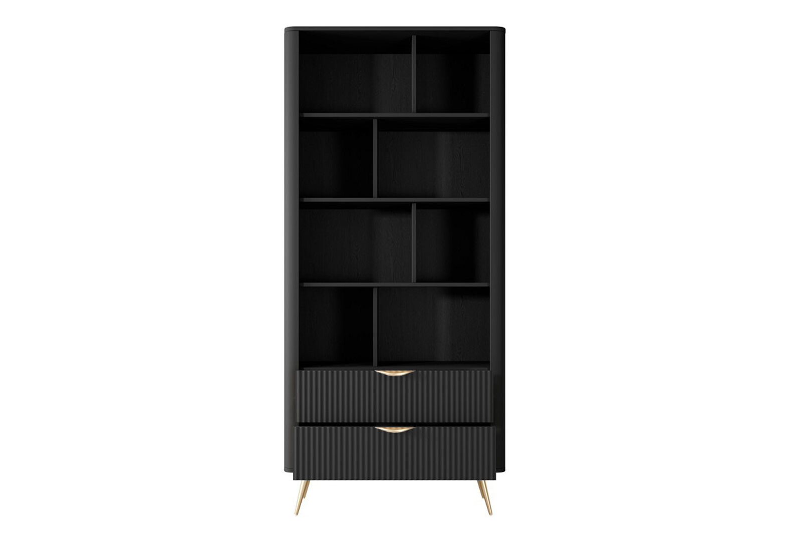 - Шкаф-стеллаж открытый Perfect Home Ланте / Lante с 2 ящиками 88 см, черный, золотые ножки