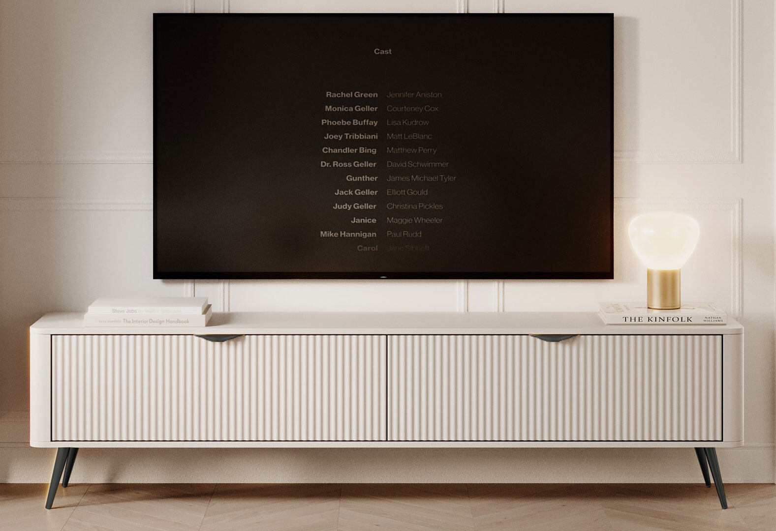 Тумба под ТВ Perfect Home Ланте / Lante с 2 дверками 163 см, бежевый, черные ножки
