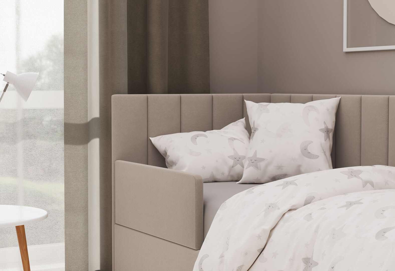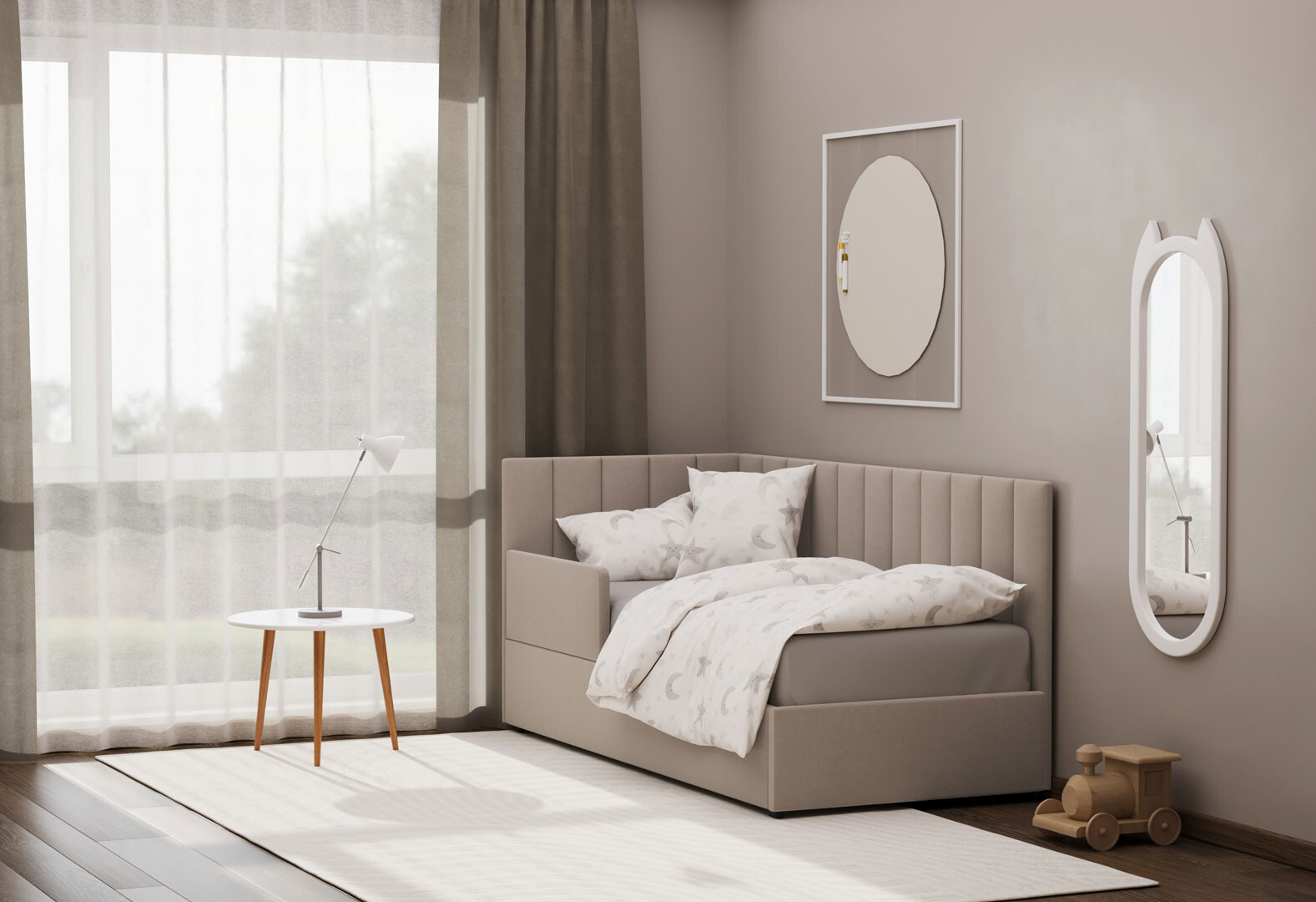 Изображение 3 - Кровать-подиум Vika Пэрлына 90х200 подъемная с каркасным матрасом и бортиком, сборка левая, бежевая (Zenit 26)