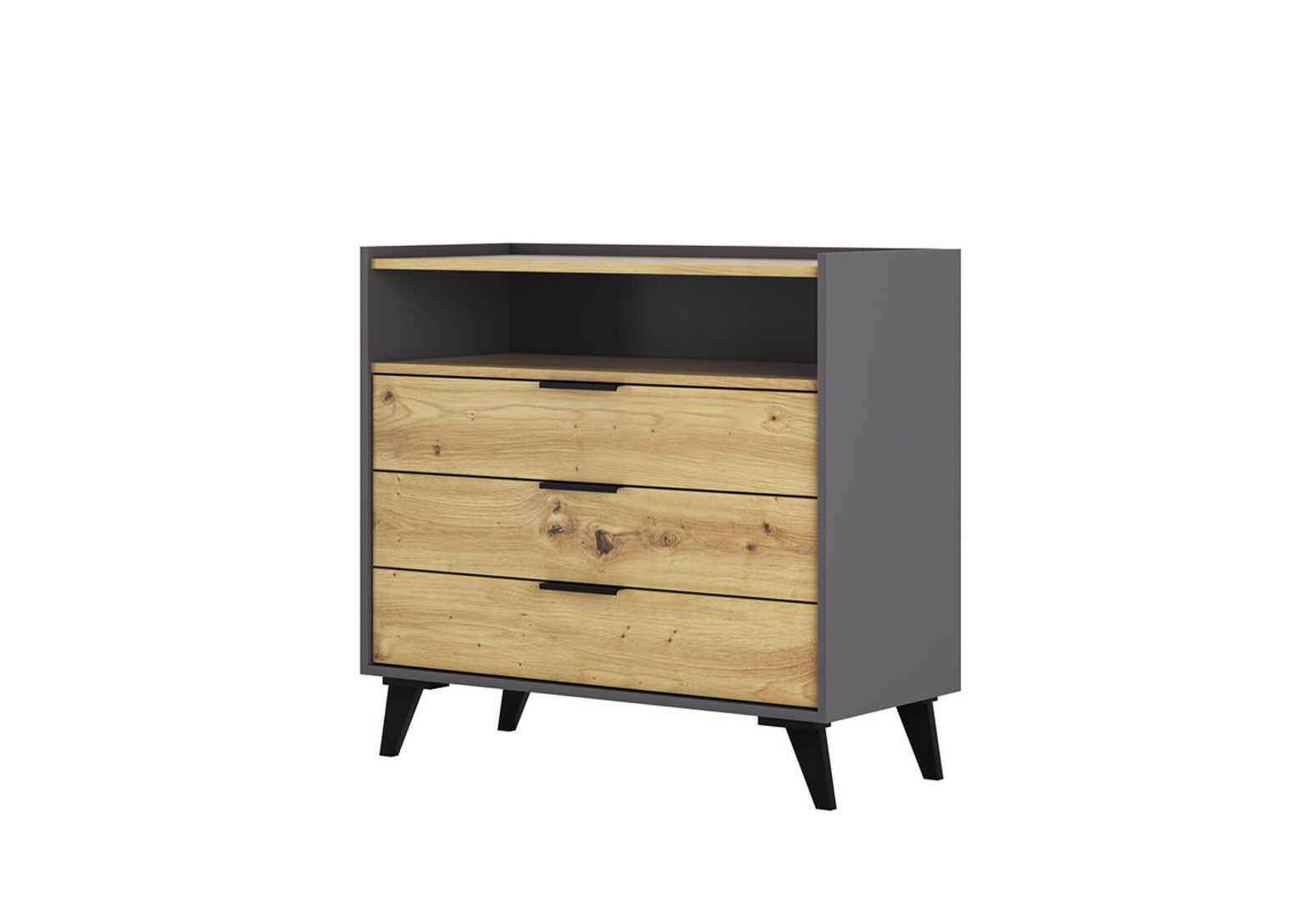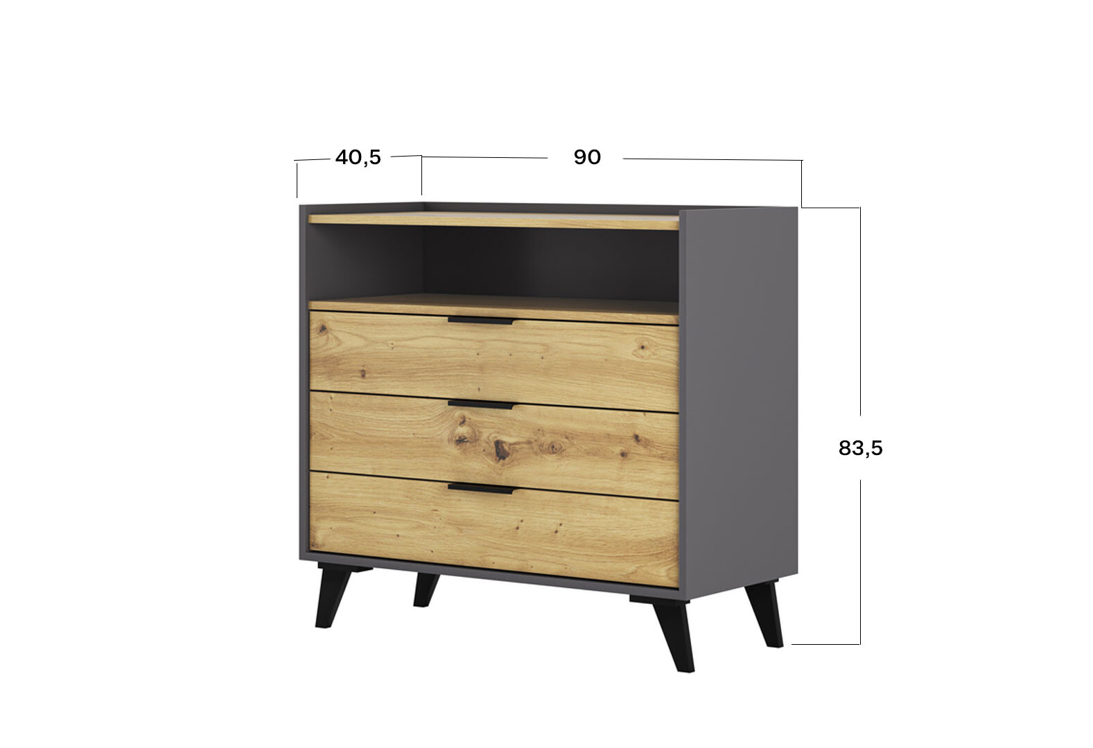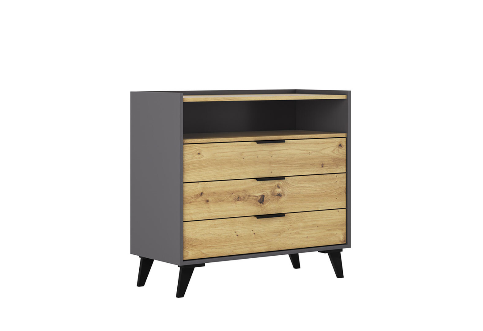 Комод Svit Mebliv Камила с 3 ящиками и полкой 90 см, дуб артизан, графит / графит