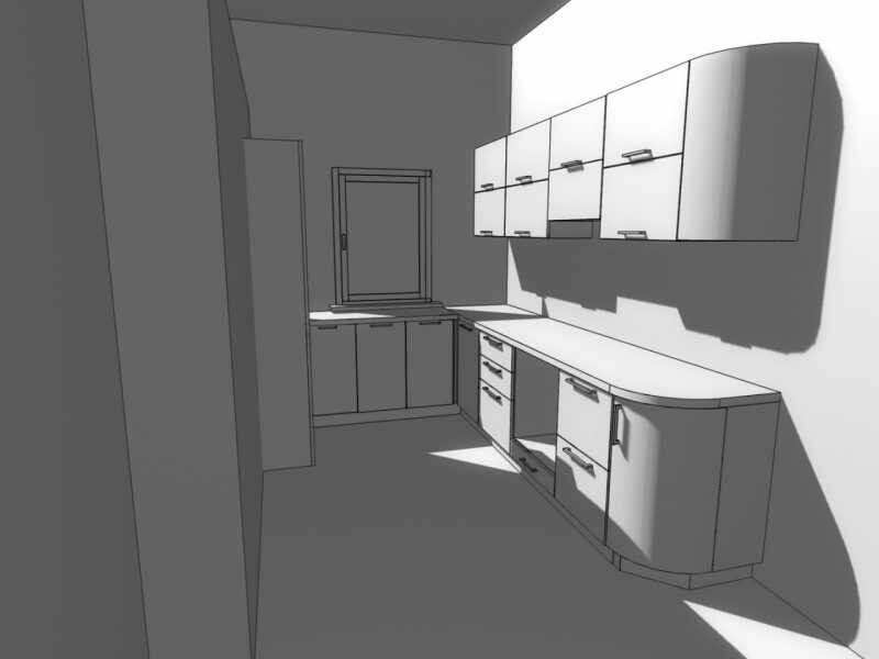Чи є у вас фасади клеєні пльонкою? Скількі коштуватиме кухні з МДФ, фасади «клеена мальорка» та столешнею? Розмір кухні 2,85м*2,10м(з лівого боку на малюнку холодильник),там де вікно ширина столешні 47см.