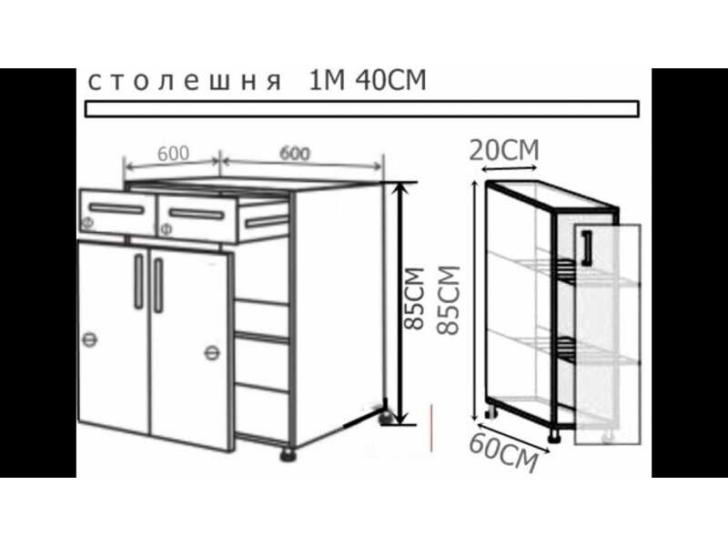 Стойка длинною в метр, ширина 30 см. Вторая тумба ( та что под холодильничек) без нижнего ящика выдвижного. И подскажите ,пожалуйста, цена указана с учётом столешни??