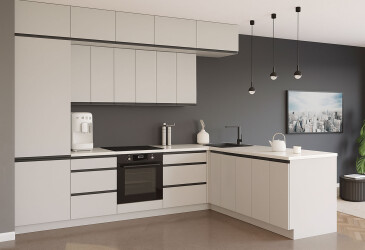 К кухонным тумбочкам входит полный комплект фурнитуры (дверные ручки, петли, нерегулируемые петли и материал для крепления), а также ножки. Столешница на кухню заказывается отдельно.