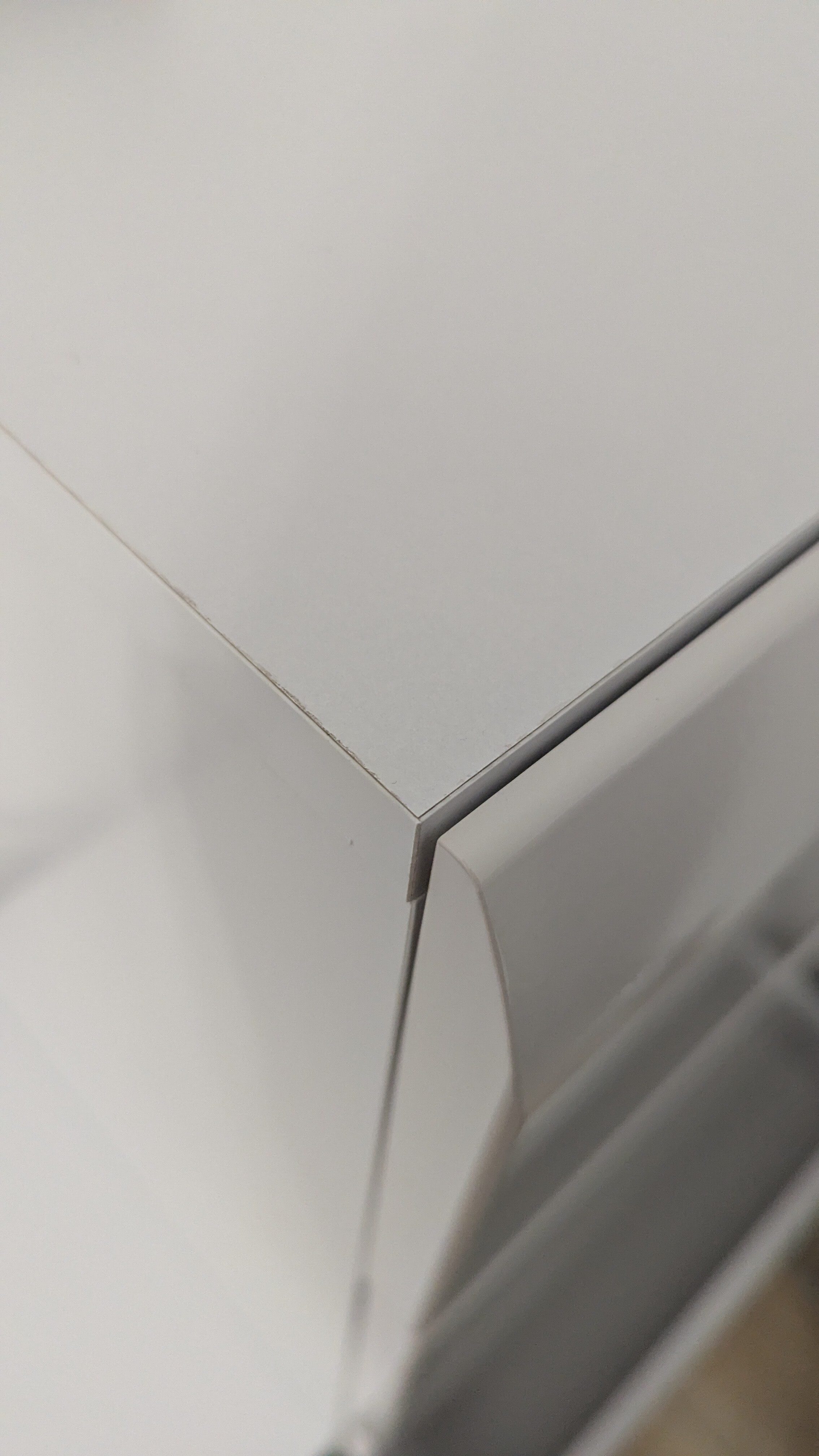 Кромка проклеєна з неохайними стиками. Позаду її взагалі немає, хоча це меблі для спальні чи вітальні і за нормами ДСП має бути закритим.
