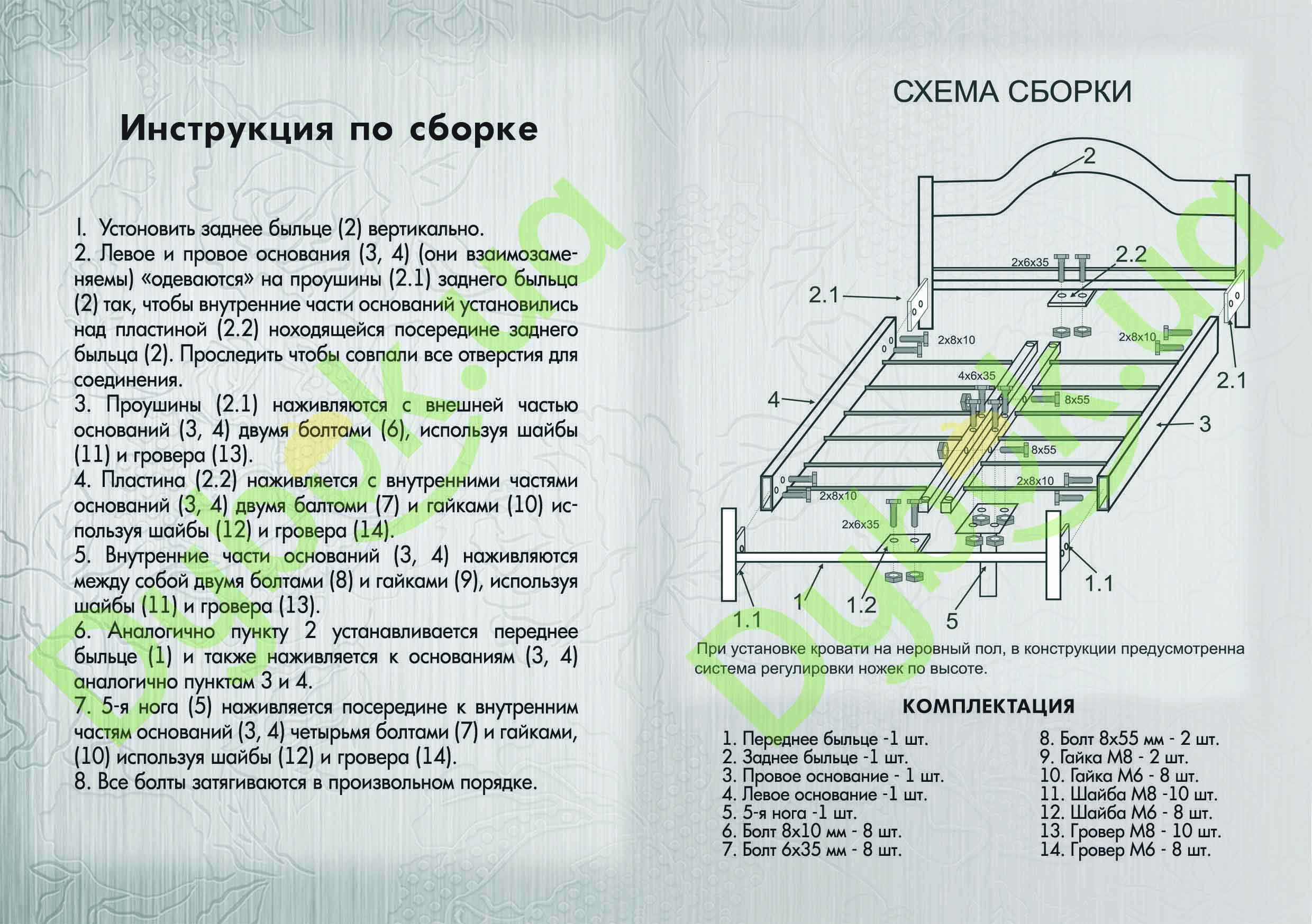В комплектацію ліжка входить каркас металевий і ДВП