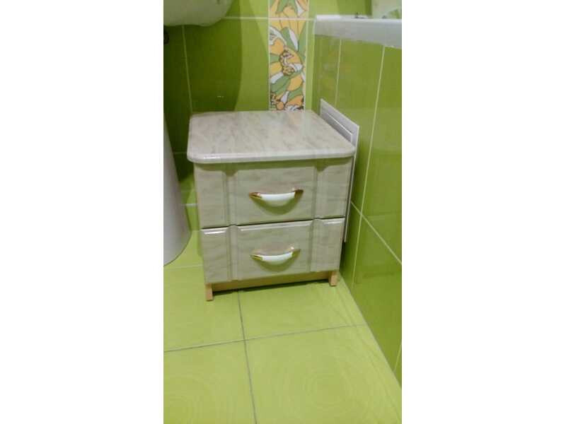 Заказала тумбочку в цвете перламутр, под кафель в ванную комнату. В принципе, неплохая.
