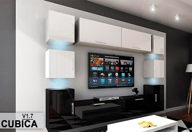 Гостиная Кубика / Cubica (с ручками) В1 + ручки 7 Глянец Белый / Глянец Чёрный МироМарк