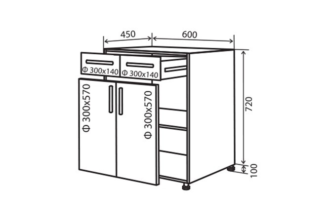 - Н26 Тумба 2Ш2Д 60 Браво Вип-Мастер