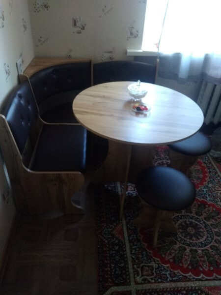 - В комплект кухонного уголка входит стол и 2 табурета;