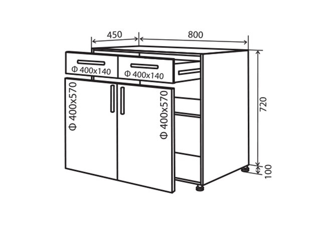 Н27 Тумба 2Ш2Д 80 (фасады ящиков без декора) Парма Декор Вип-Мастер